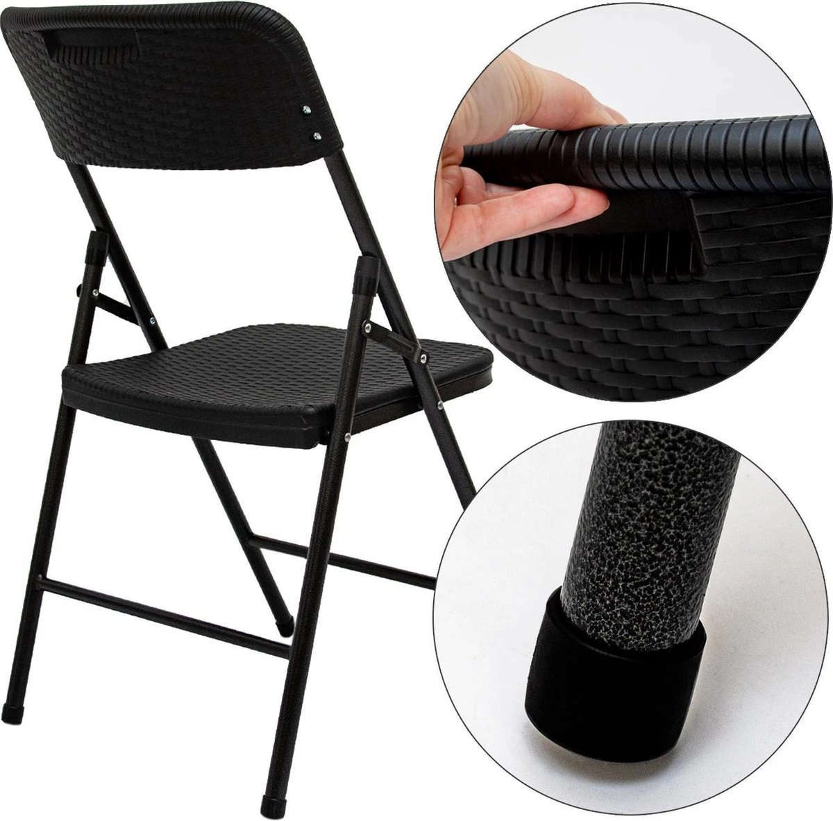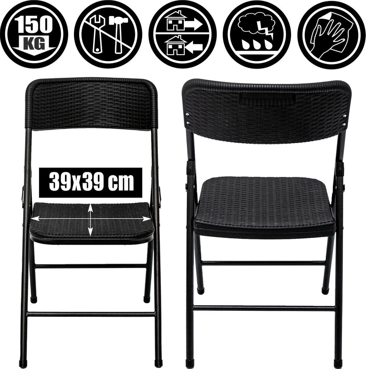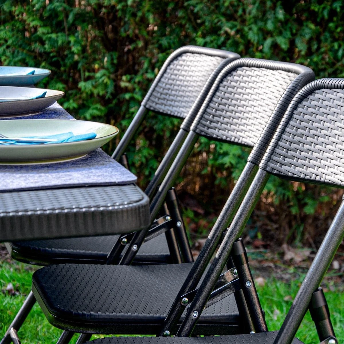 Les Mobilier de jardin sont exposés au vent et aux intempéries – cela peut rapidement laisser sa trace sur le bois. Nos chaises pliantes sont en plastique robuste aspect rotin:Résistant aux intempéries et facile à nettoyer .
