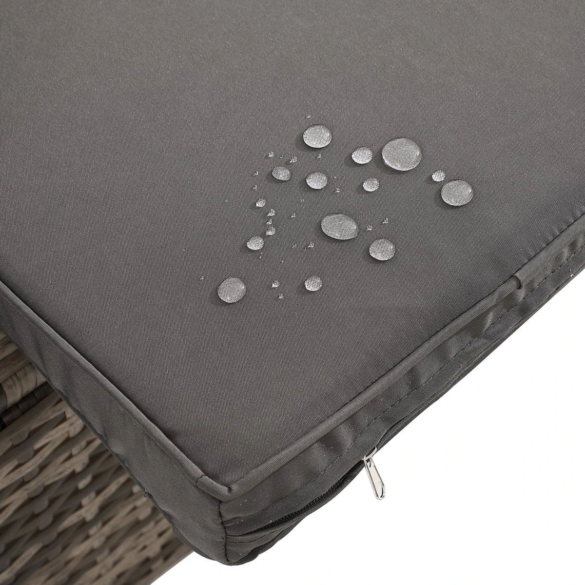 Les coussins assortis sont équipés de fermetures éclair. Les housses sont fabriquées en polyester nécessitant peu d’entretien, ce qui facilite plus que jamais leur nettoyage. La vannerie en polyrotin anti-salissures est facile à nettoyer et ne nécessite pratiquement aucun entretien.