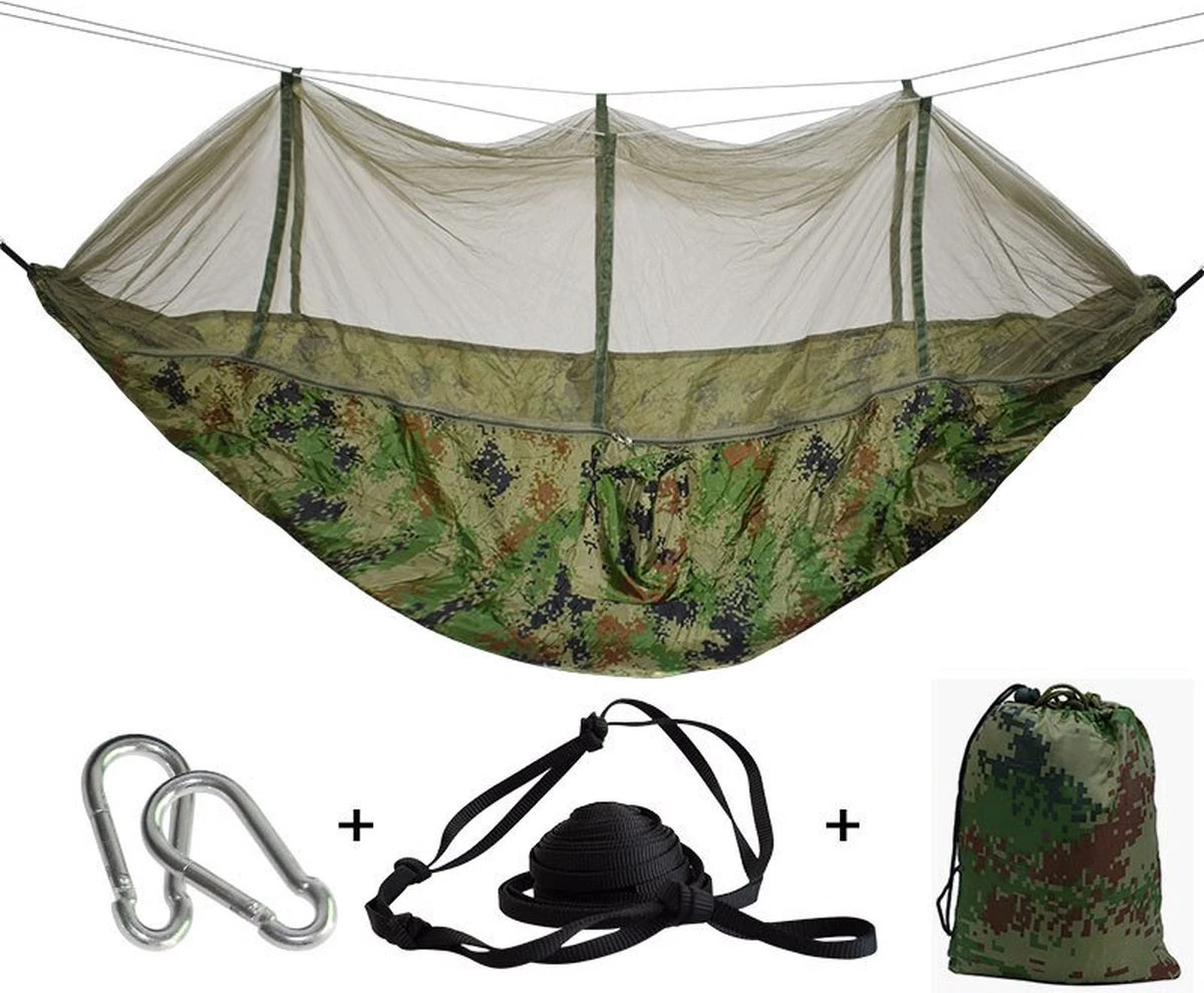 - Ce hamac est celui que vous pouvez réellement utiliser pour dormir dehors ou lorsque vous souhaitez vous allonger au soleil. Avec une moustiquaire et un hamac 2 en 1, il vous protégerait des moustiques et autres parasites.