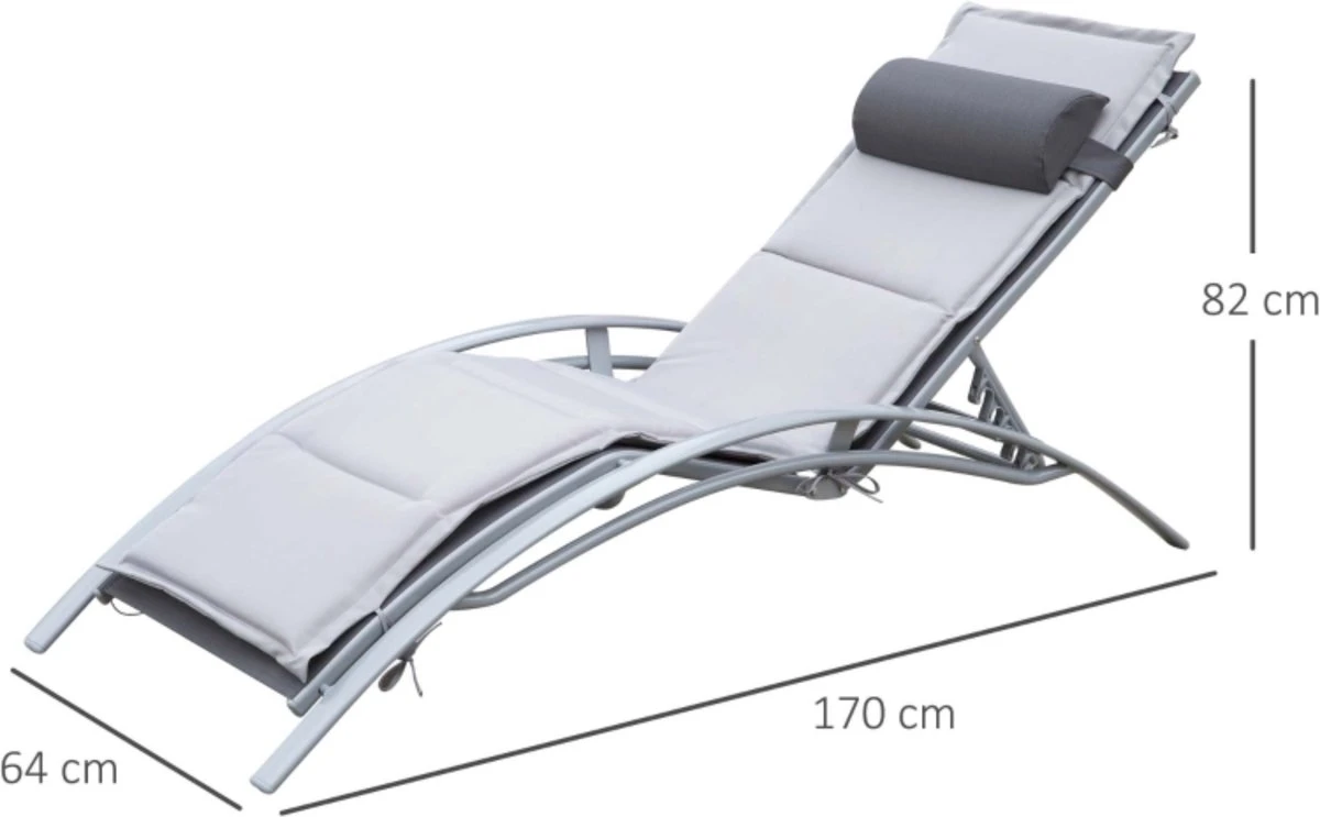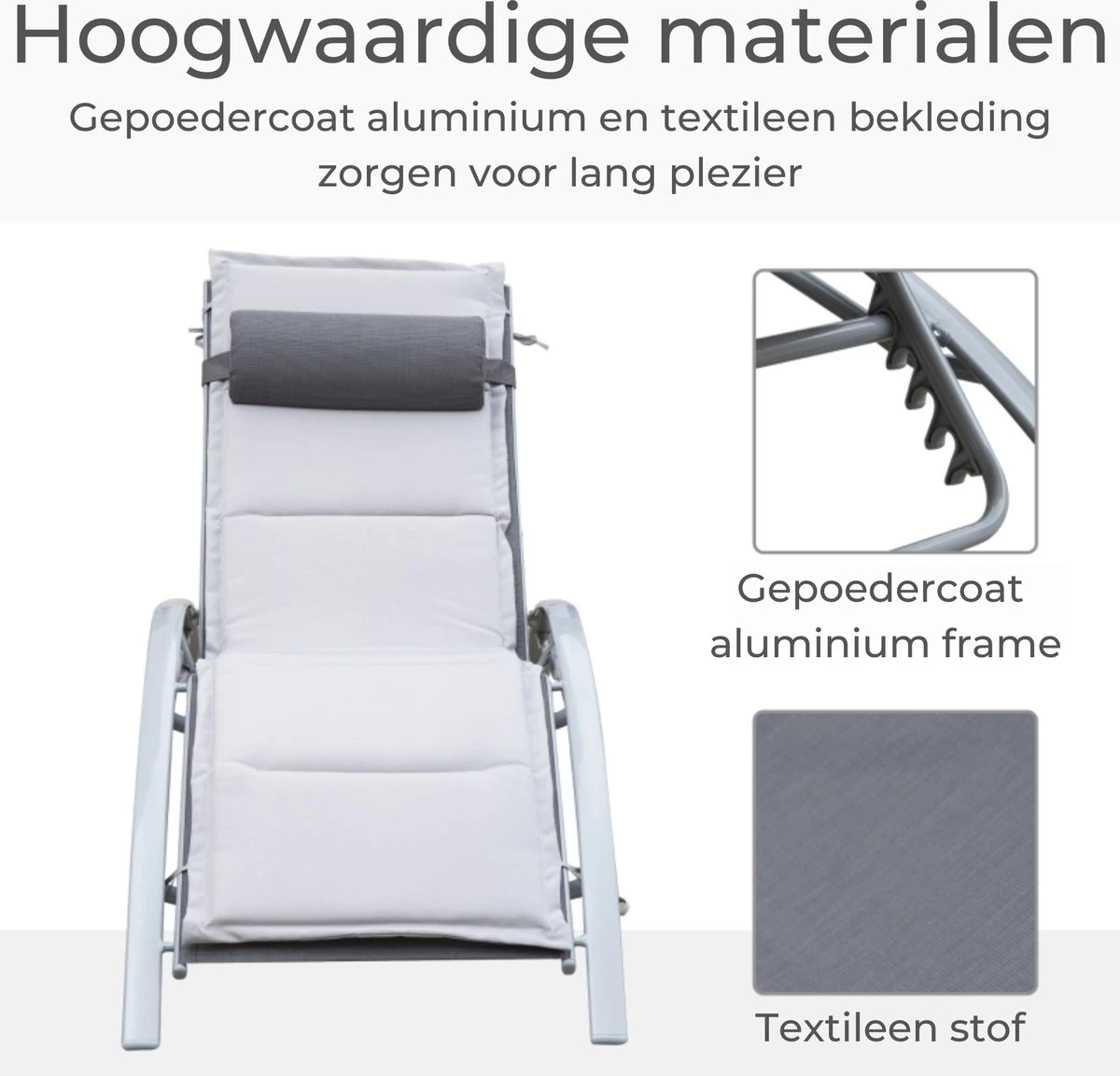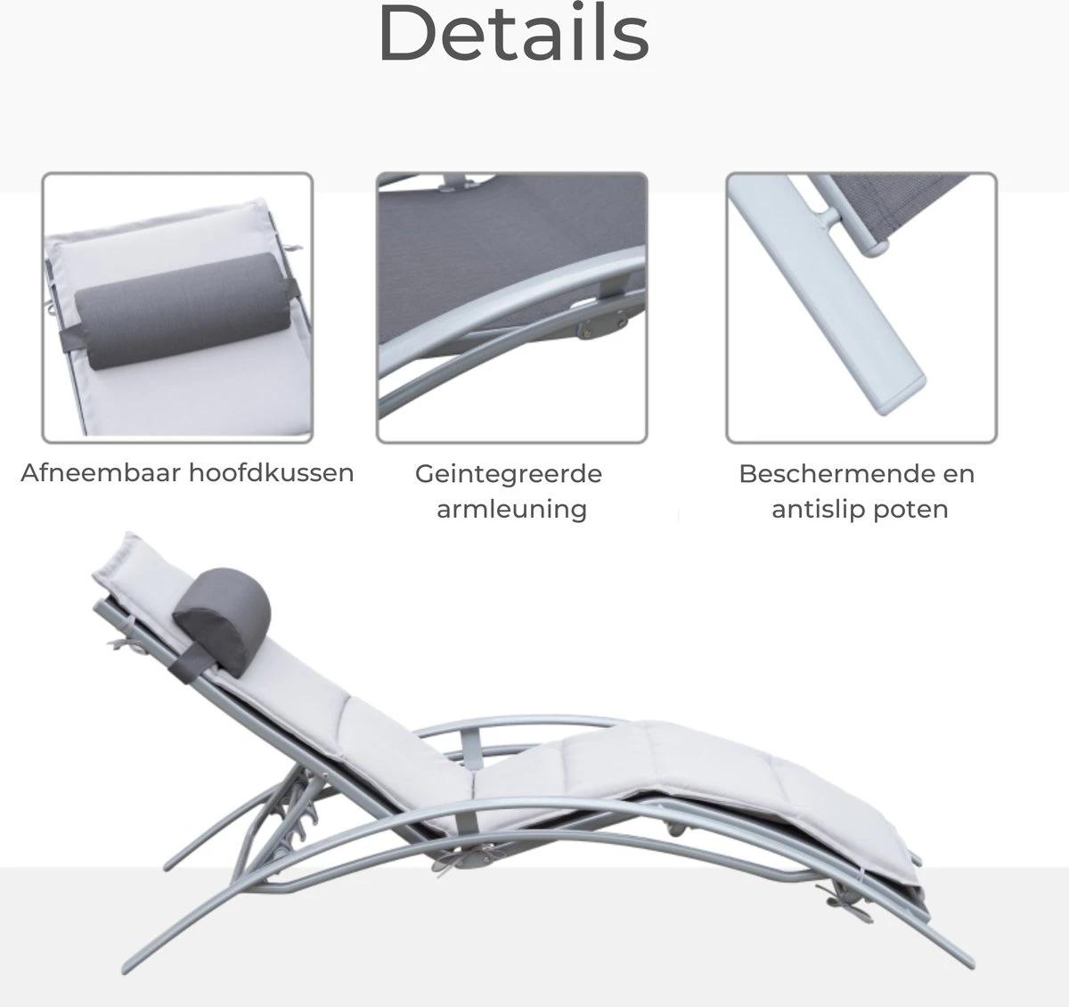 Bain De Soleil – Bain De Soleil De Forme Ergonomique – Bain De Soleil – Chaise De Jardin Relax – Ajustable – Aluminium – Grijs