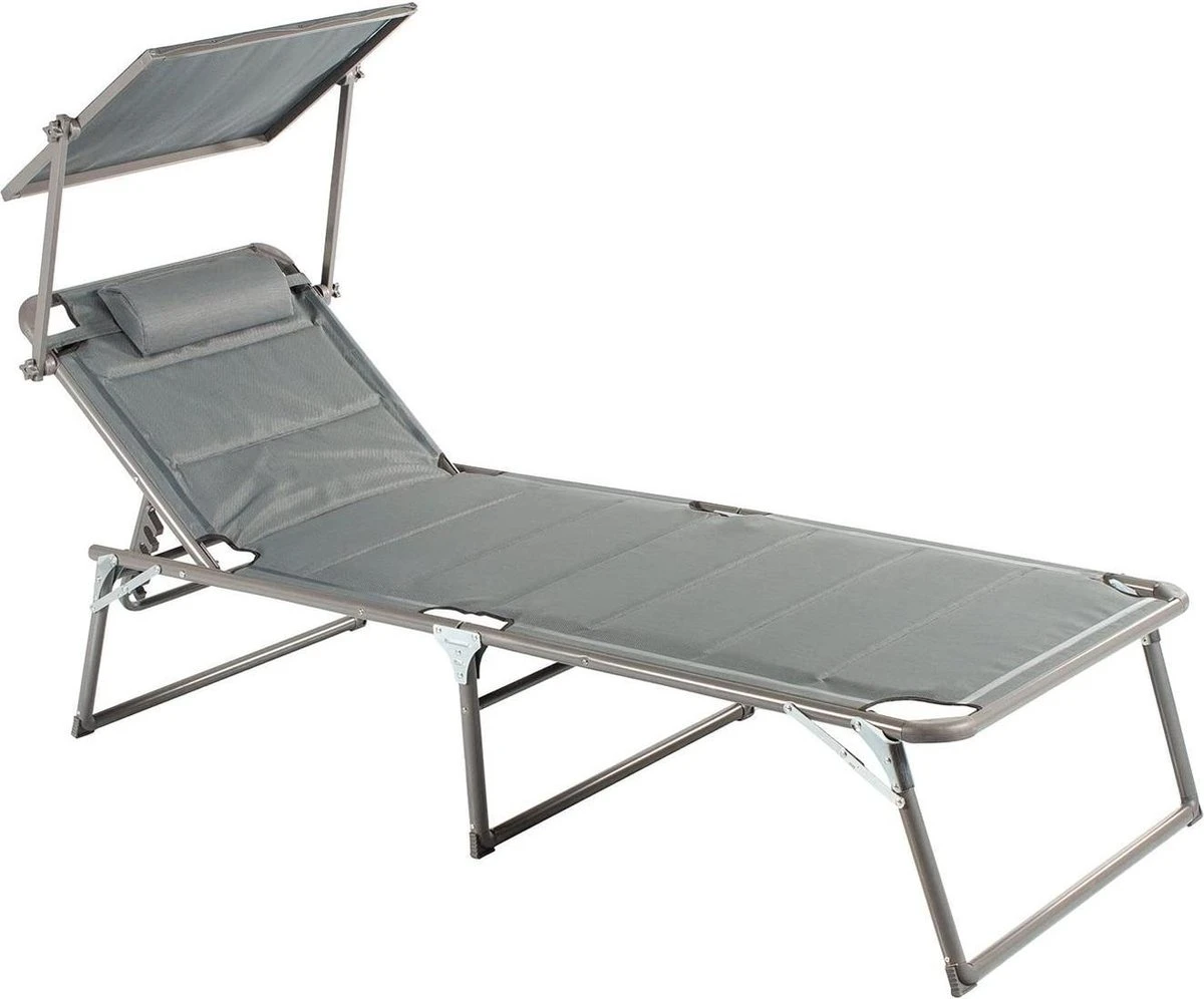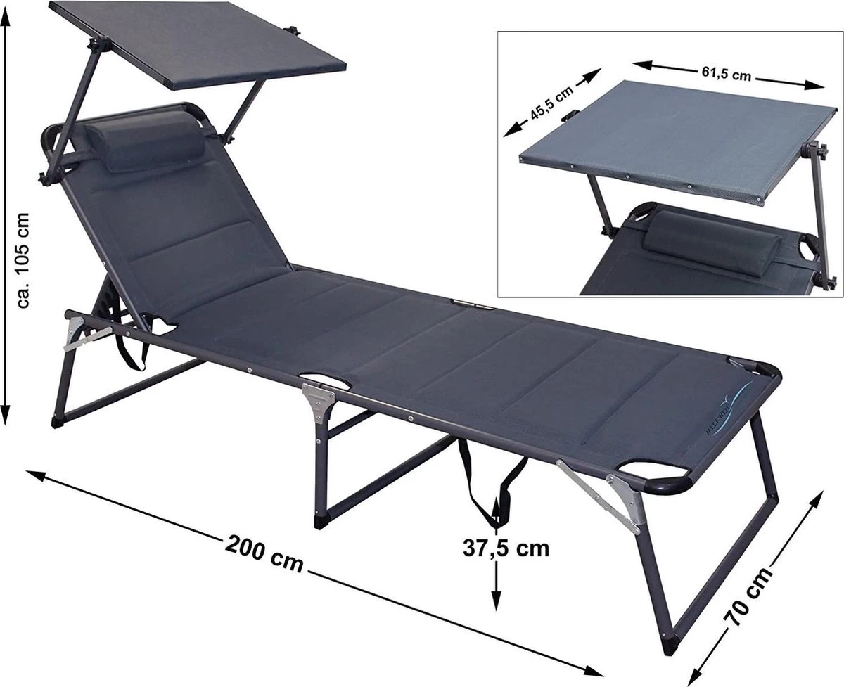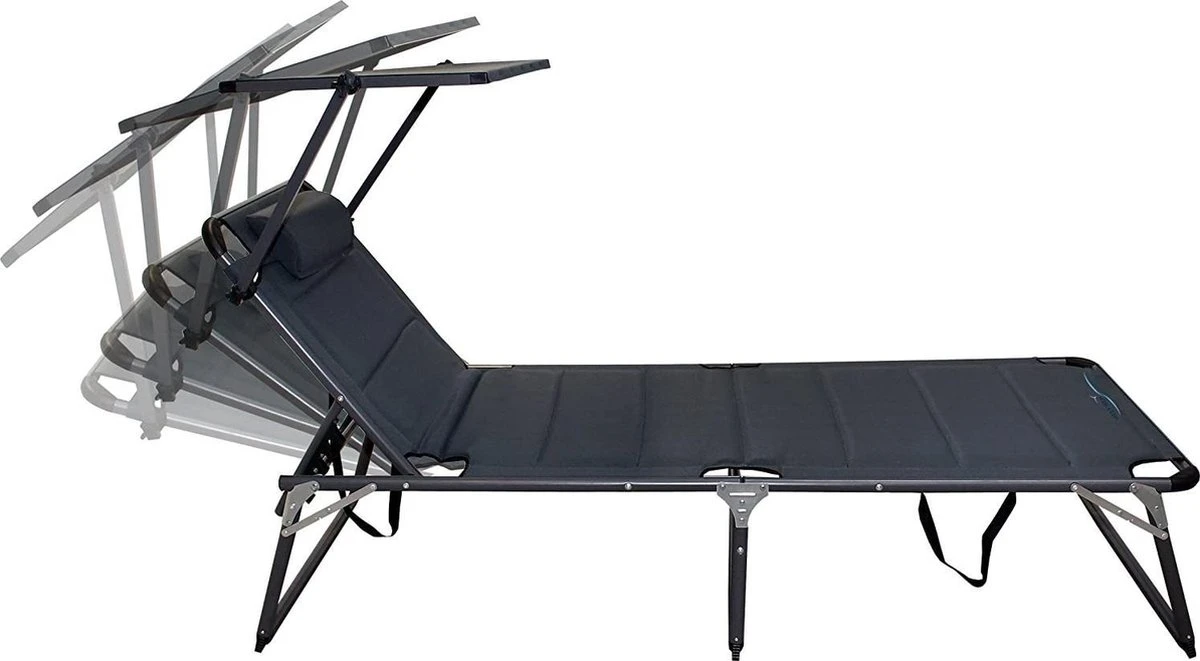 - La chaise longue pliante XXL à trois pieds avec pare-soleil réglable vous invite à bronzer de manière perturbée.