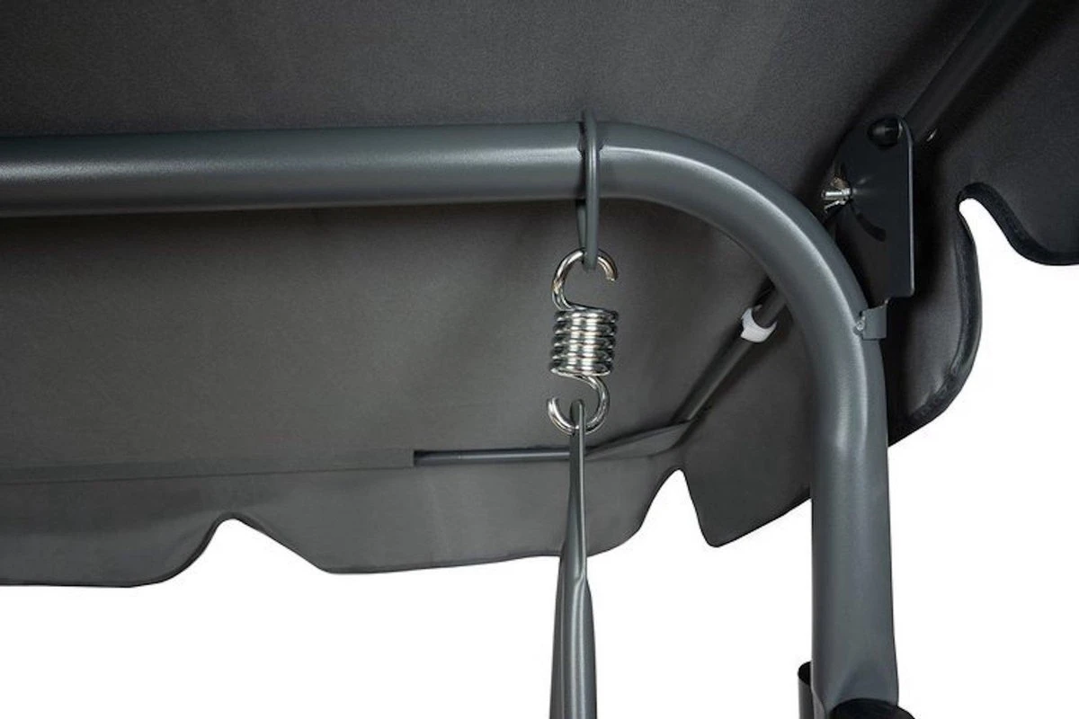 La balançoire de jardin présentée a également un auvent très pratique dans l’ensemble. Il est réglable afin que vous puissiez toujours ajuster l’inclinaison en fonction de vos besoins. Ce type de toiture offre une excellente protection contre le soleil et le vent et a donc un effet positif sur la qualité du repos.