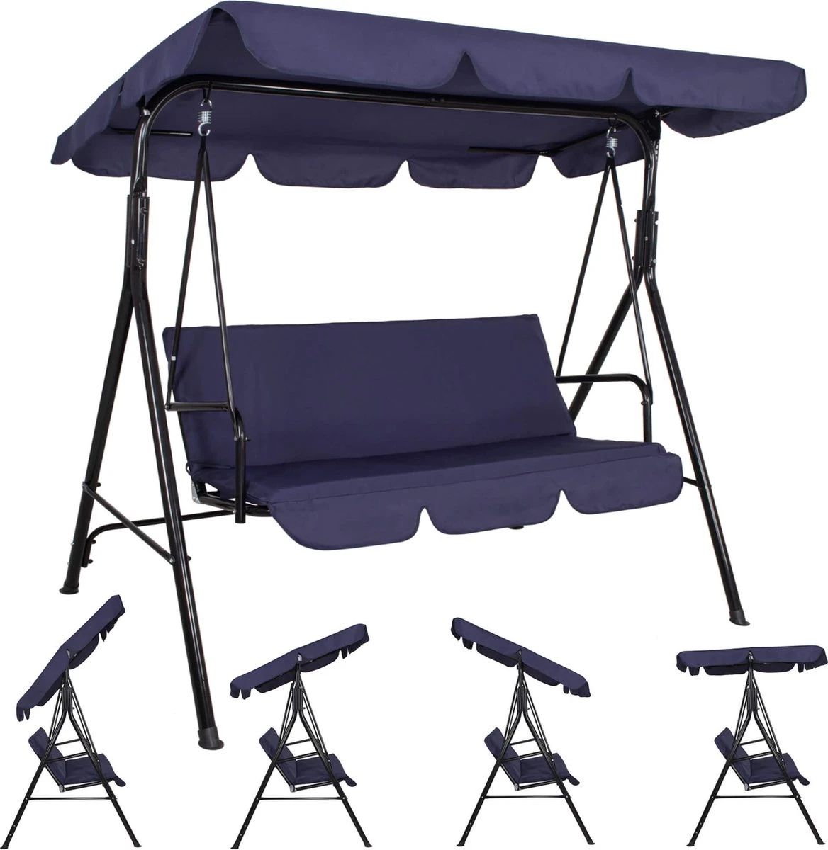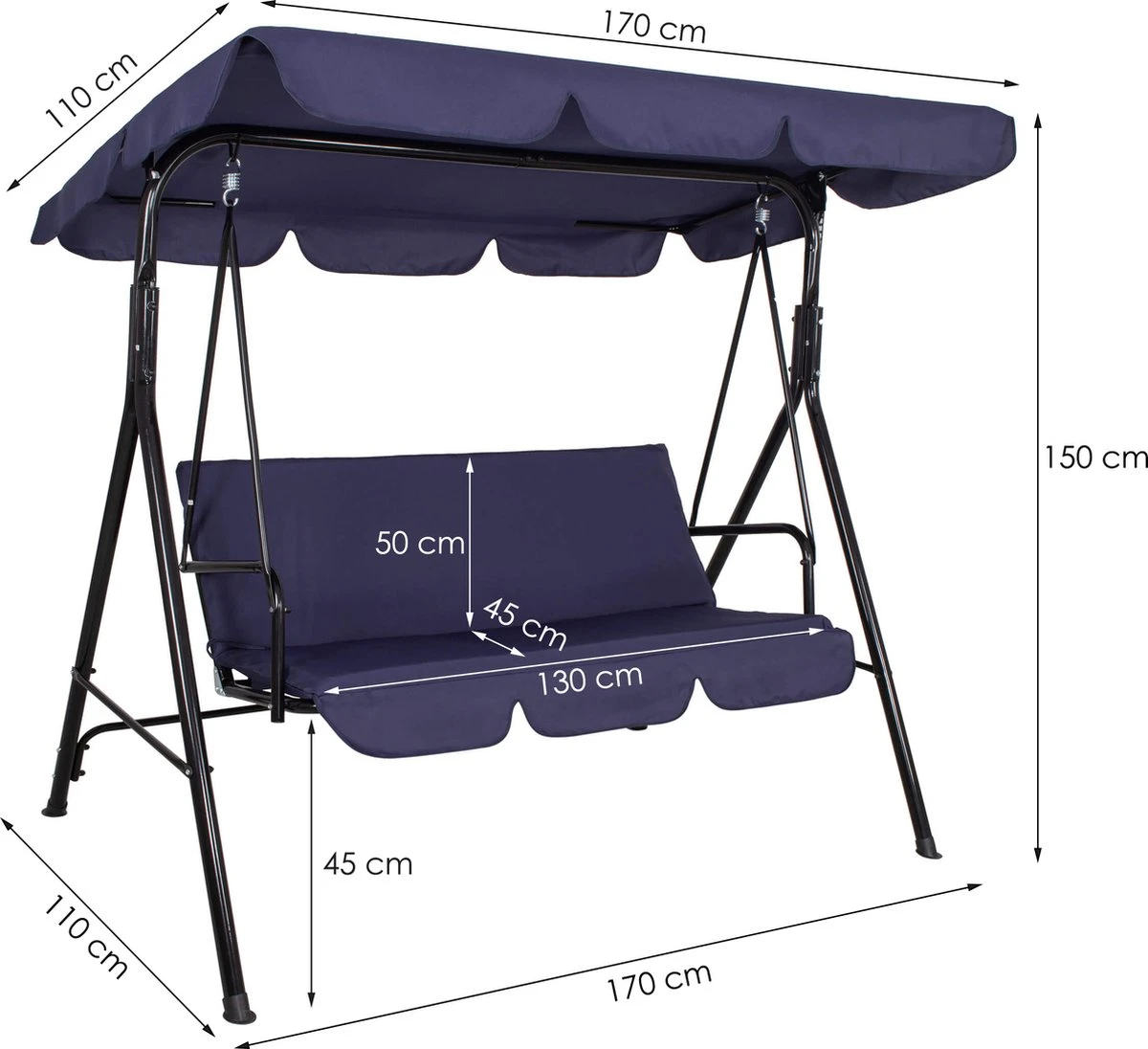 Tout comme le reste du matériel, l’auvent de la balançoire de porche est étanche afin que vous soyez protégé contre la pluie. De plus, l’auvent peut être ajusté, de sorte qu’il offre également une protection contre le soleil. Le cadre en acier est recouvert d’un revêtement qui empêche la rouille, de sorte que vous pouvez profiter de la balançoire du porche pendant des années. De plus, des détails tels que des pieds antidérapants, des ressorts robustes et un beau design garantissent que rien ne s’oppose à un plaisir optimal !