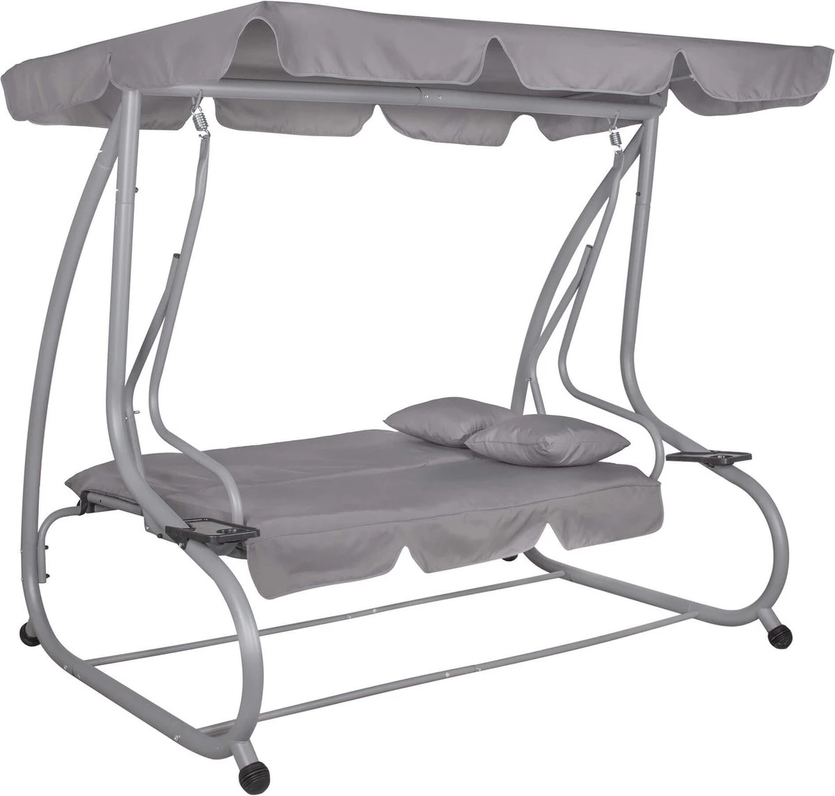 Tout comme le reste du matériel, l’auvent de la balançoire de porche est étanche afin que vous soyez protégé contre la pluie. De plus, l’auvent peut être ajusté, de sorte qu’il offre également une protection contre le soleil. Le cadre en acier est recouvert d’un revêtement qui empêche la rouille, de sorte que vous pouvez profiter de la balançoire du porche pendant des années. De plus, des détails tels que des pieds antidérapants, des ressorts robustes et un beau design garantissent que rien ne s’oppose à un plaisir optimal !