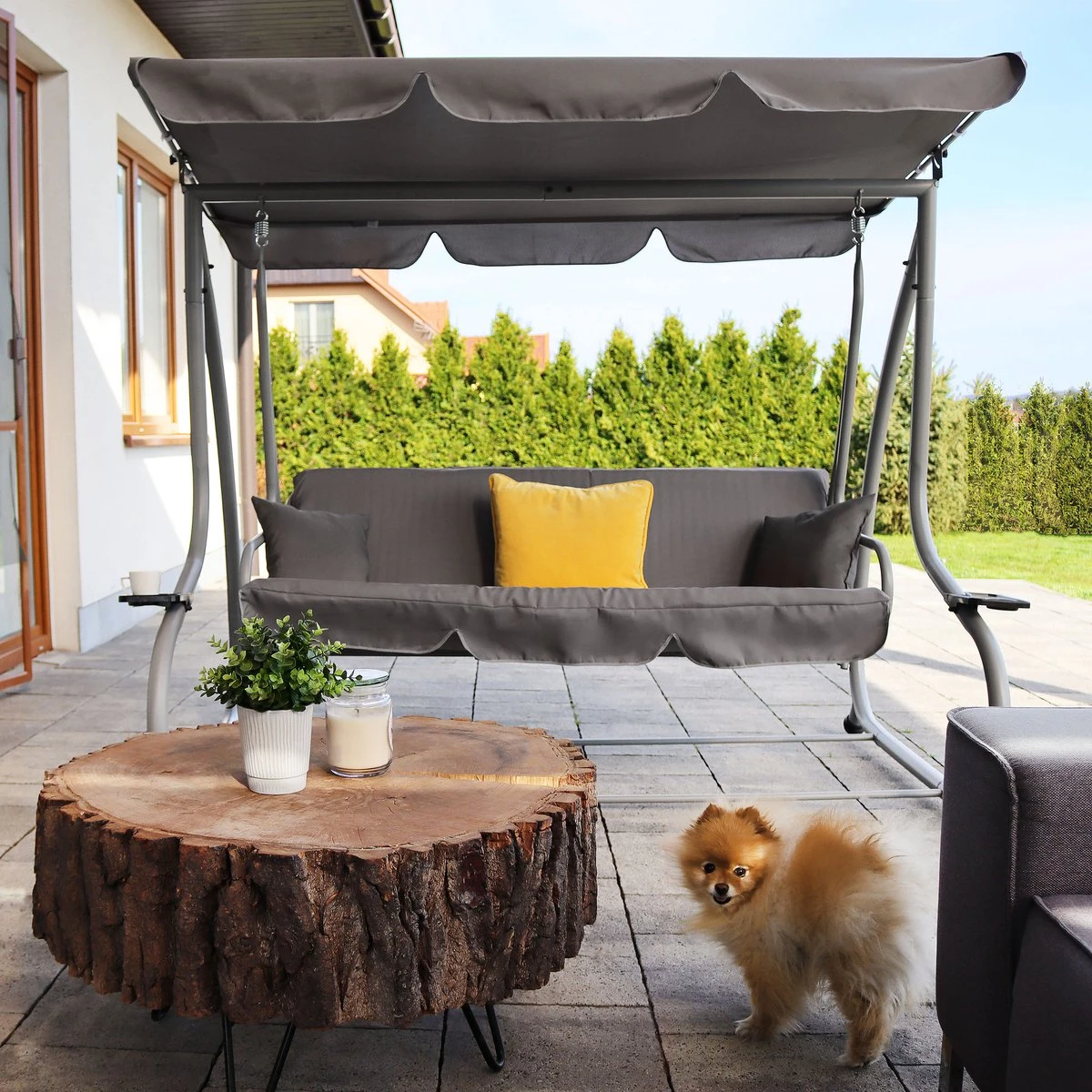 Offrez-vous un merveilleux moment de détente dans le canapé balançoire Springos. La balançoire est faite des meilleurs matériaux et est de haute qualité. Ce confortable canapé pivotant 3 places est livré avec 2 coussins moelleux qui non seulement augmentent la facilité d’utilisation, mais qui lui donnent également un aspect confortable.
