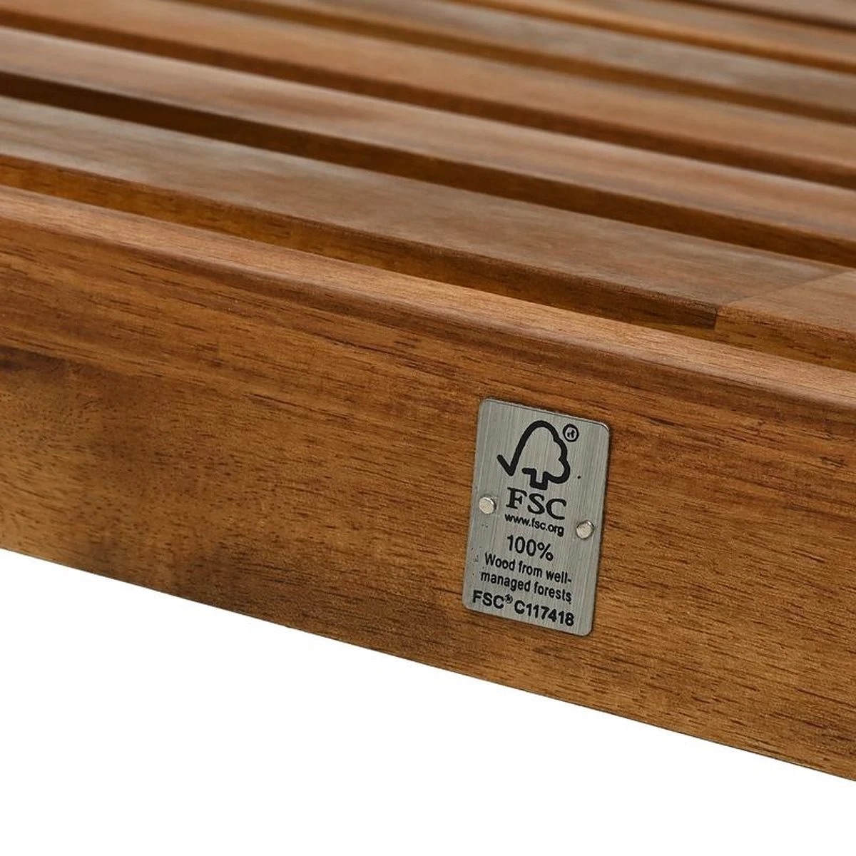 Ce produit est fait de bois dur de haute qualité. Ce meuble peut être laissé à l’extérieur toute l’année. Nous vous recommandons de nettoyer le canapé deux fois par an et de le traiter avec un nettoyant et un protecteur pour teck. Pour prolonger la durée de vie de votre salon de jardin, nous vous conseillons de le recouvrir d’une housse de protection pour salon de jardin.