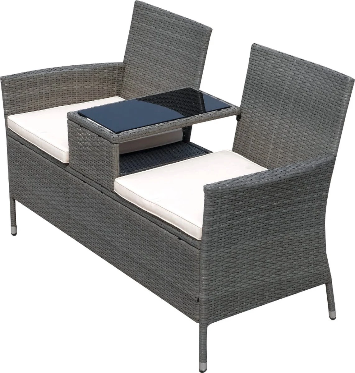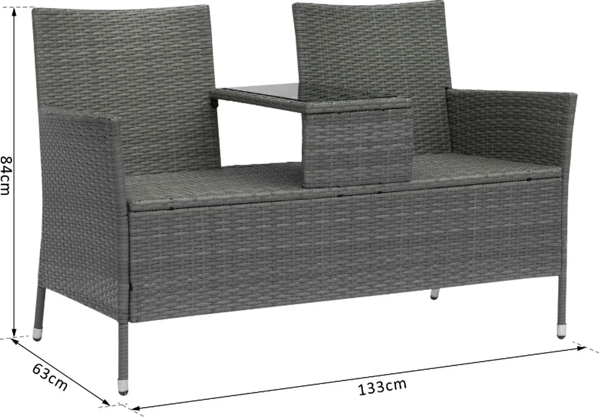 Ben vous cherchez une chaise confortable avec une étagère pour vous détendre dans le jardin ou sur la terrasse, vous trouverez votre bonheur avec notre confortable canapé de jardin 2 places.
