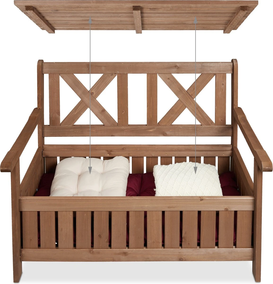 Quoi de plus agréable que de profiter du soleil dans votre eigen jardin par une chaude journée d’été ? Prenez le temps de vous détendre et de laisser libre cours à vos pensées sur ce canapé d’extérieur décoratif. Les citadins peuvent également utiliser ce canapé en bois de style campagnard. Par exemple, ils peuvent lui donner une place sur le balcon. Le banc de jardin avec espace de rangement invite à la détente à deux en plein air. Le compartiment intérieur spacieux du banc de rangement offre un espace supplémentaire pour ranger les coussins de siège, les couvertures et plus encore.