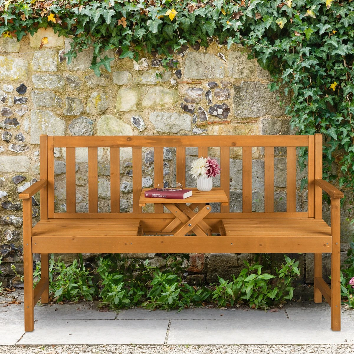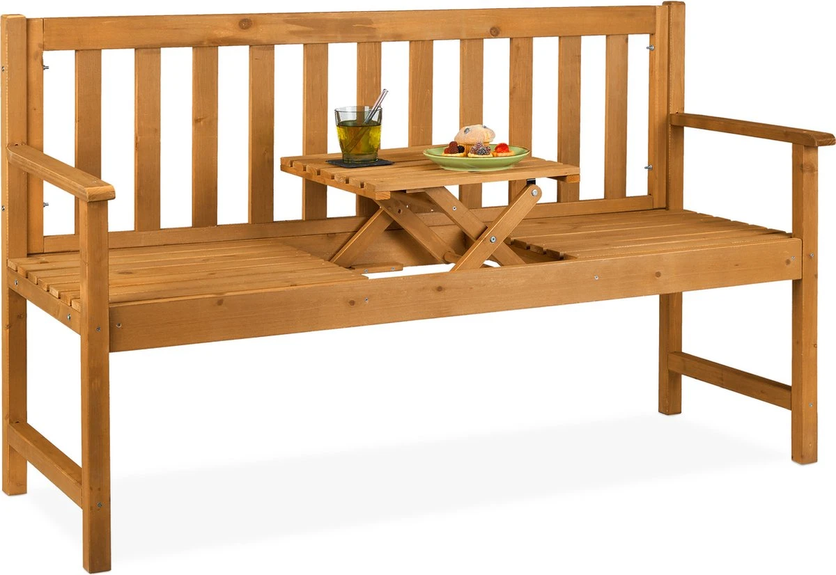 Quoi de plus agréable que de profiter du soleil par une chaude journée d’été dans votre eigen jardin ou sur la terrasse ? Détendez-vous sur ce canapé d’extérieur confortable et magnifique pouvant accueillir jusqu’à 3 personnes. Le point culminant particulier est : une table pliante est cachée au milieu du banc de balcon en bois. Cela convertit le banc en bois en 2 places en un instant. Profitez d’une soirée romantique sur ce banc de jardin avec un plateau de table pratique pour des verres à vin, des collations ou un café l’après-midi.