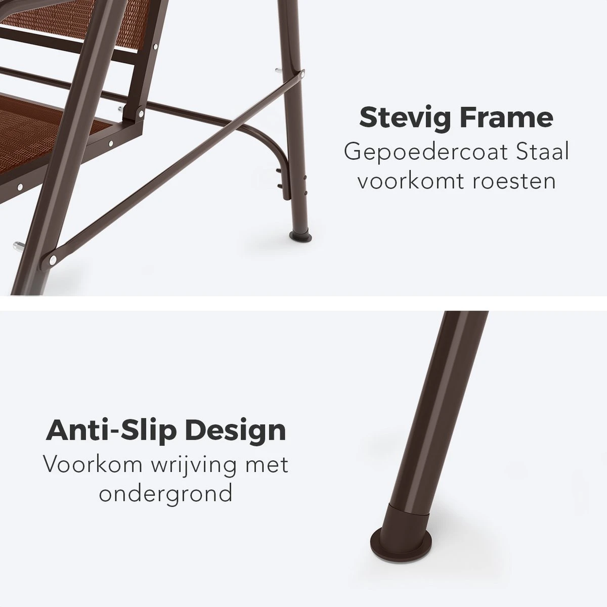 Le banc de balançoire a un cadre très robuste et stable. Les tubes épais vous permettent de profiter du canapé pendant des années. L’acier du cadre est enduit de poudre et donc protégé contre la rouille. Cela rend le banc balançoire adapté à votre terrasse, votre véranda, mais aussi juste pour le jardin !