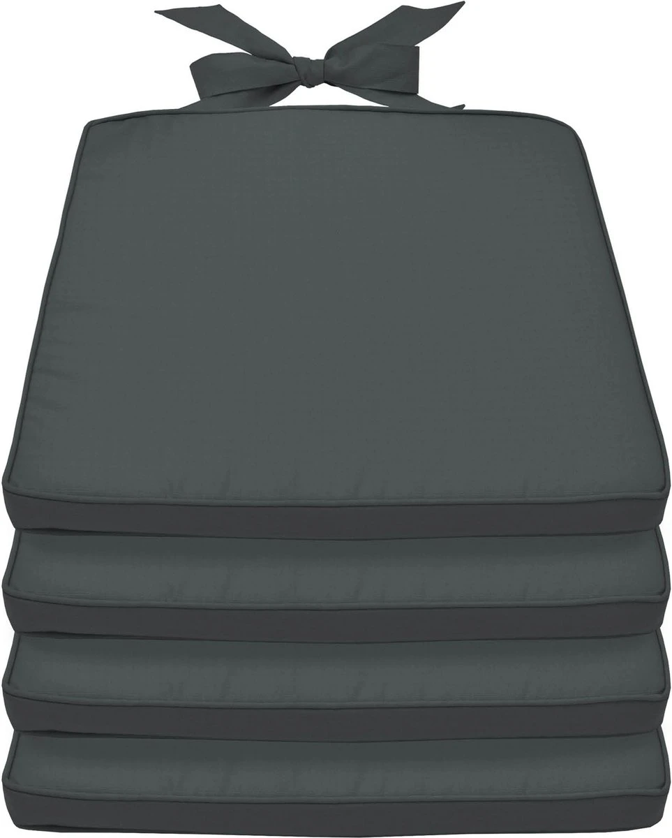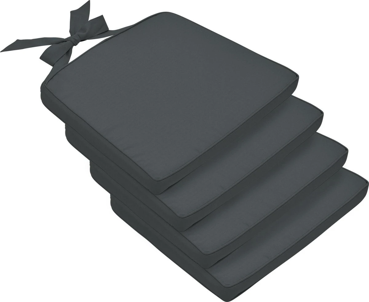 Beautissu Coussin De Chaise Set De 4 Coussins D’assise Extérieur 45x40x5 Cm – Coussin Grijs – Coussin D’Assise Avec Ruban – Pia