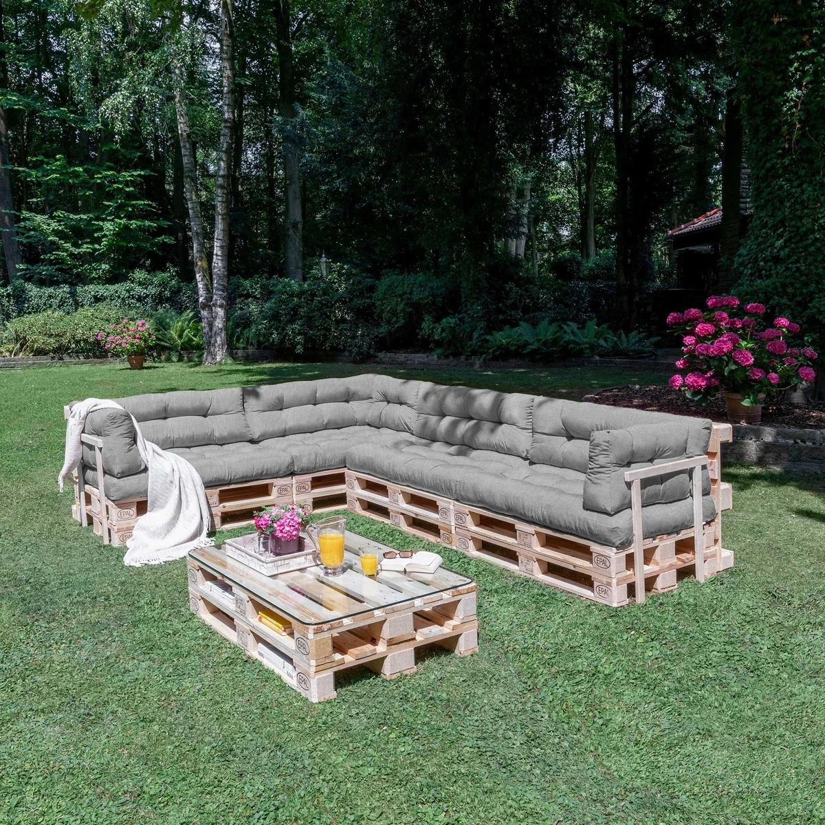 Avec les coussins de palette ECO Style de Beautissu, vous pouvez transformer une simple palette euro en un siège confortable et élégant en un rien de temps.
