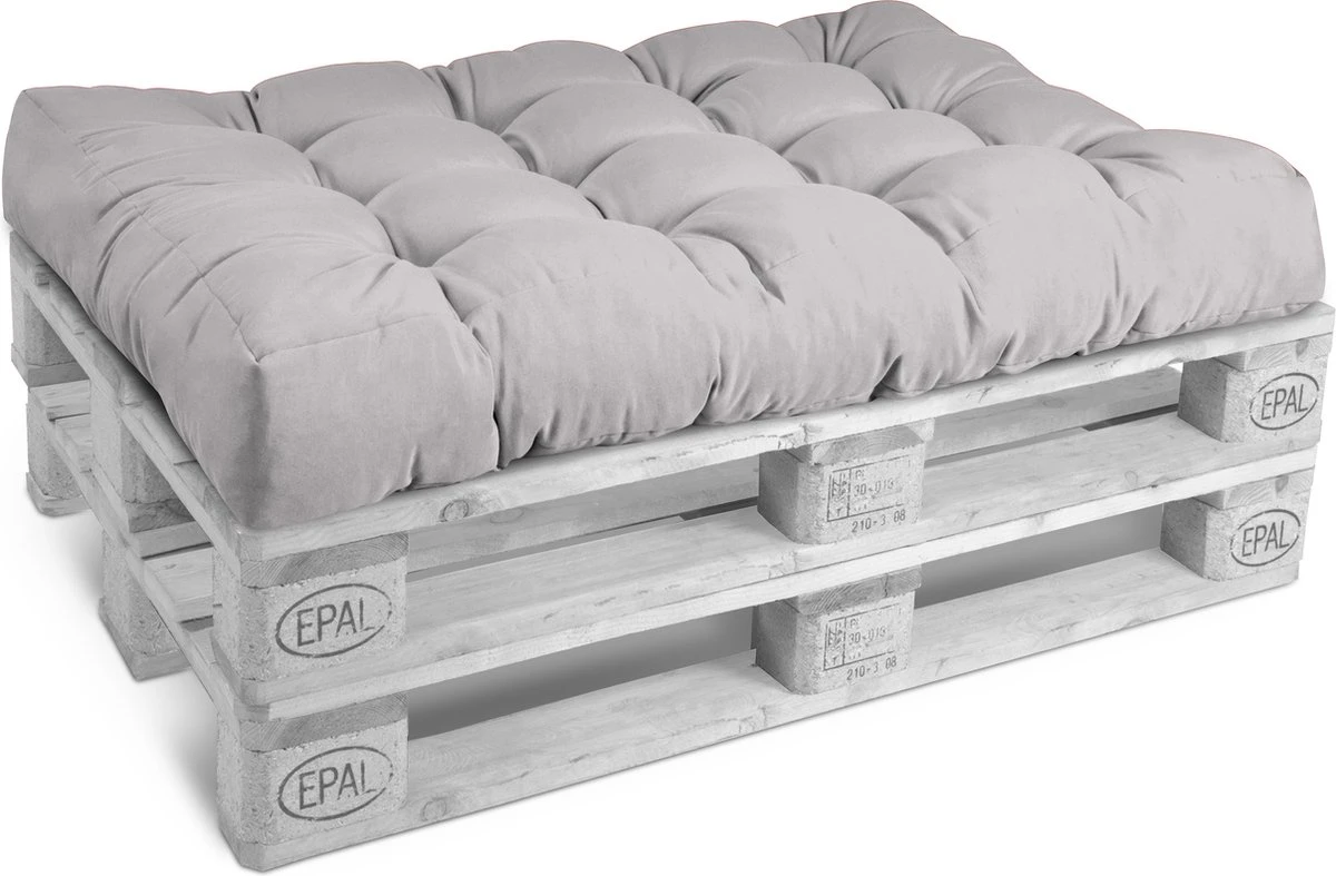 Les coussins sont très confortables et s’adaptent à toute palette européenne standard. La housse est composée de 75% coton et 25% polyester. Les coussins sont très robustes et peuvent être lavés à la main. Nos coussins sont remplis de flocons de mousse.