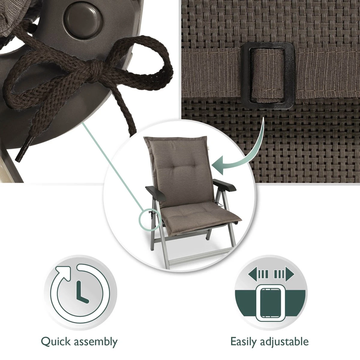 - Disponible en différentes couleurs, également disponible en housse de chaise de jardin avec dossier bas