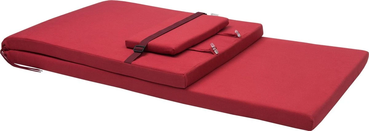 et au pied une sangle avec fermeture velcro avec laquelle le kussen peut être attaché très facilement.
