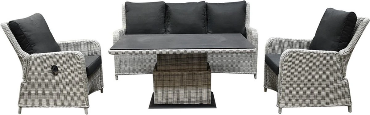 Ibiza XL Chaise Canapé Salle à Manger Salon Ensemble 4 Pièces Gris Avec Table Réglable Carré