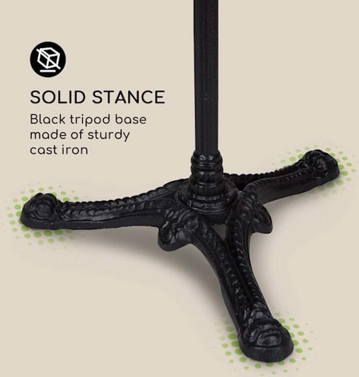 - Support stable : base à trois pieds en fonte robuste