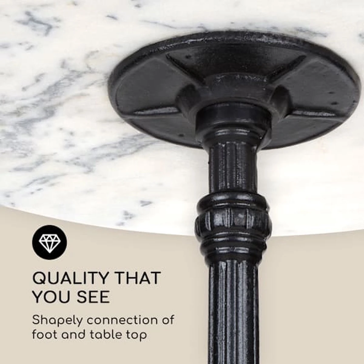 - Qualité visible : belle connexion du pied et du dessus de table