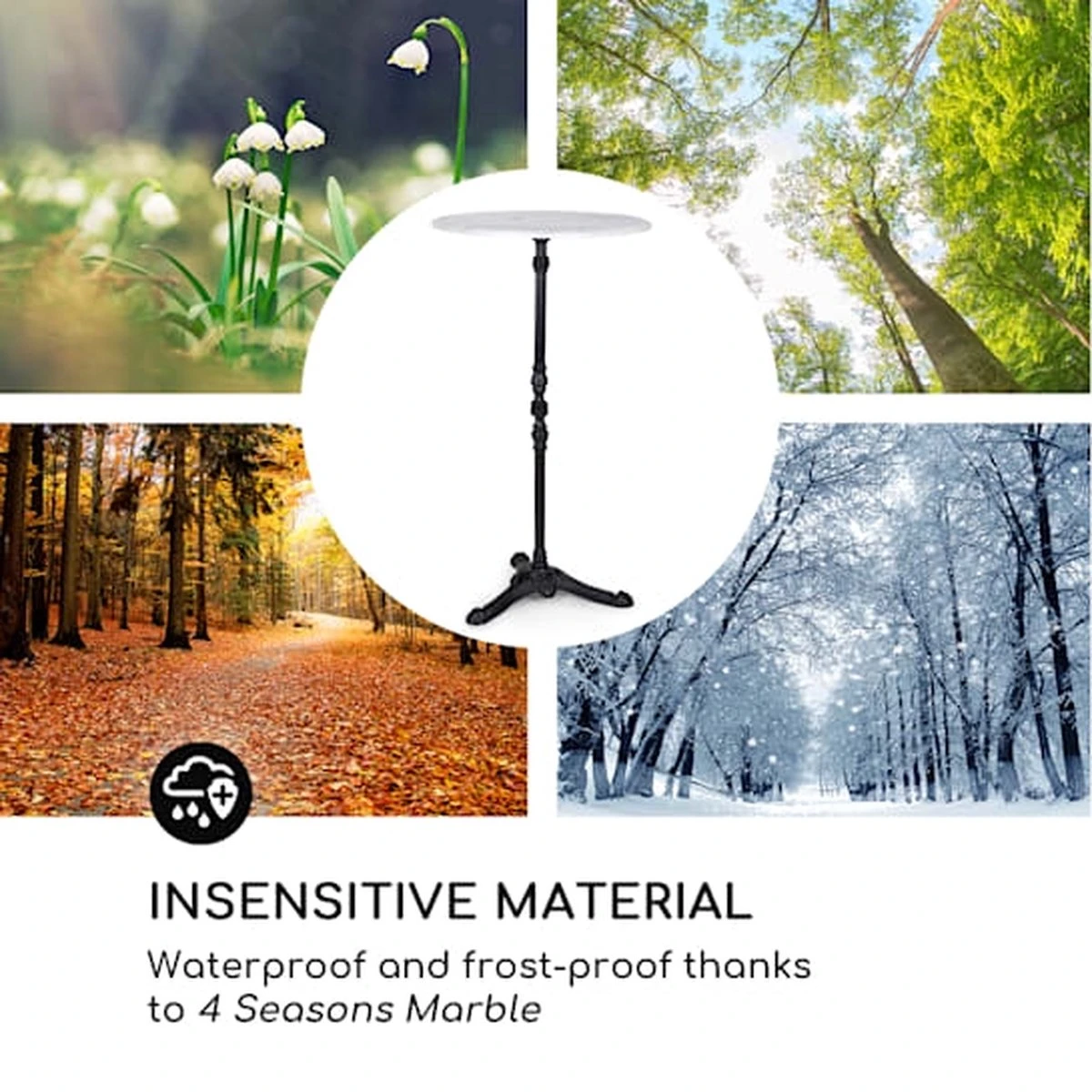 - Matériau indestructible : résistant à l’eau et au gel grâce au 4-Seansons-Marbre