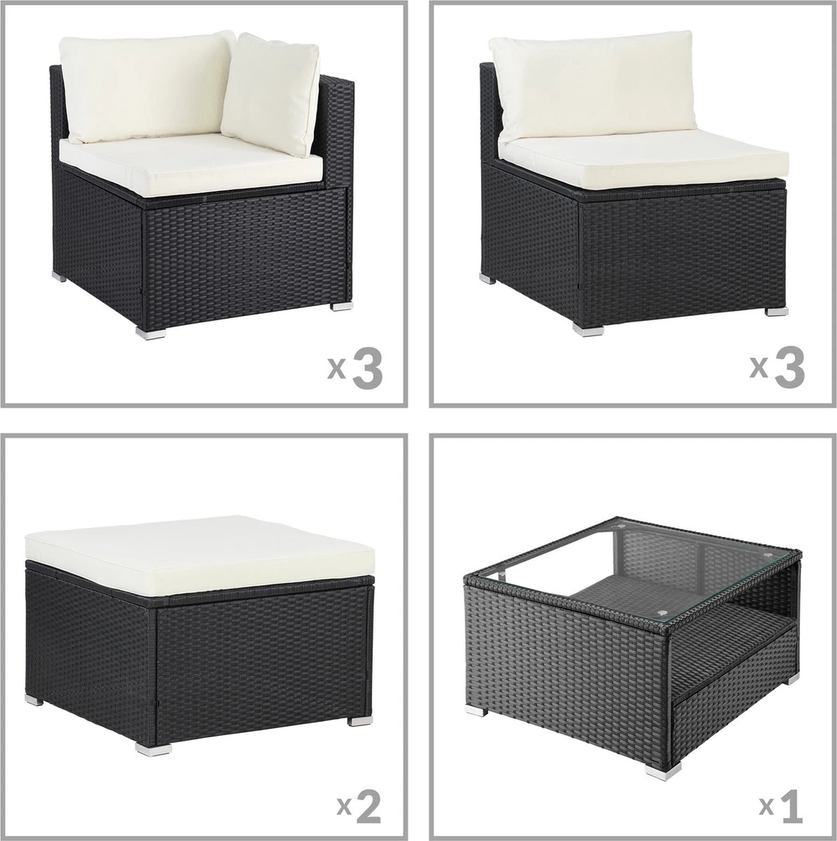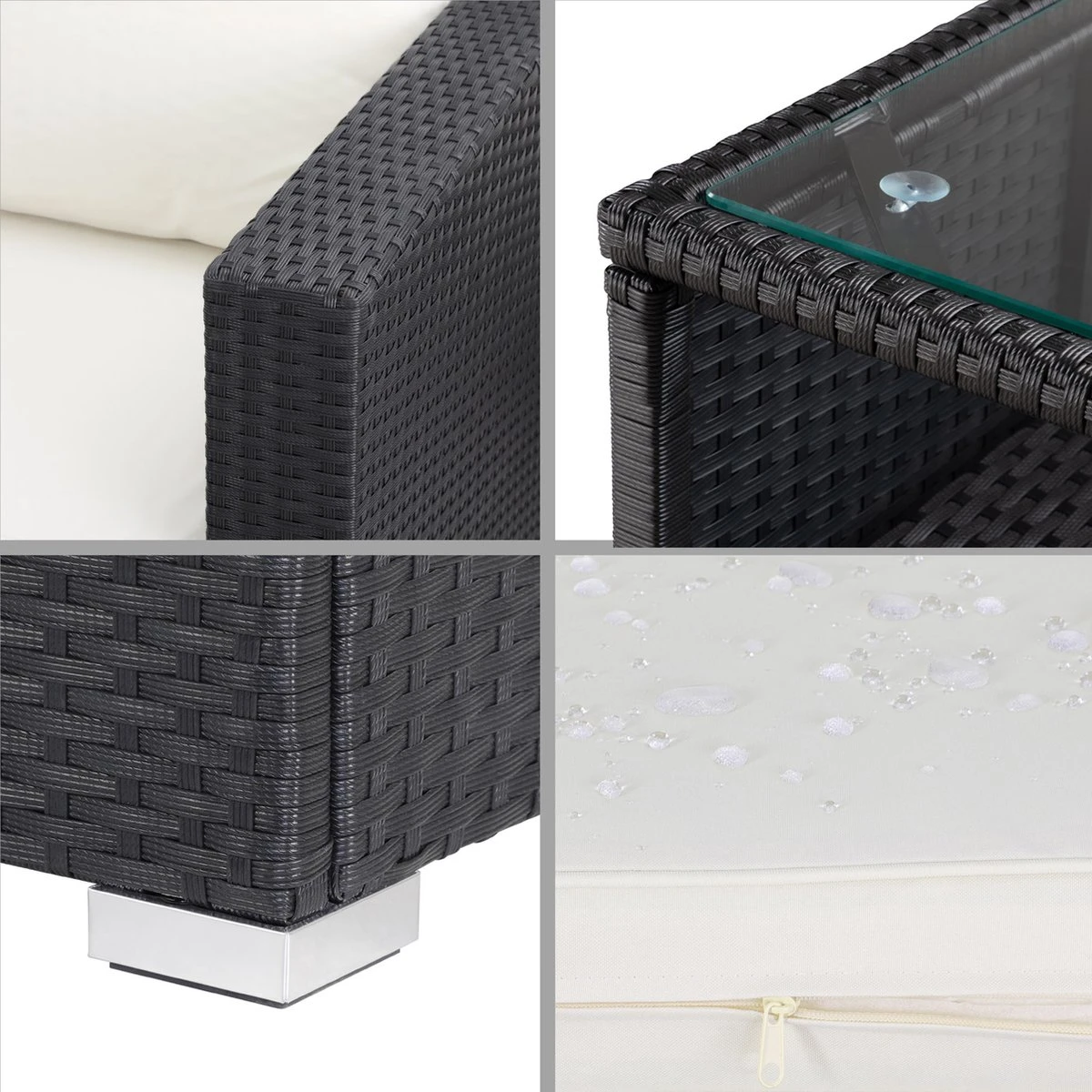 Profitez de moments cosy et cosy en famille ou entre amis sur l’ensemble de salon en polyrotin 26 pièces.