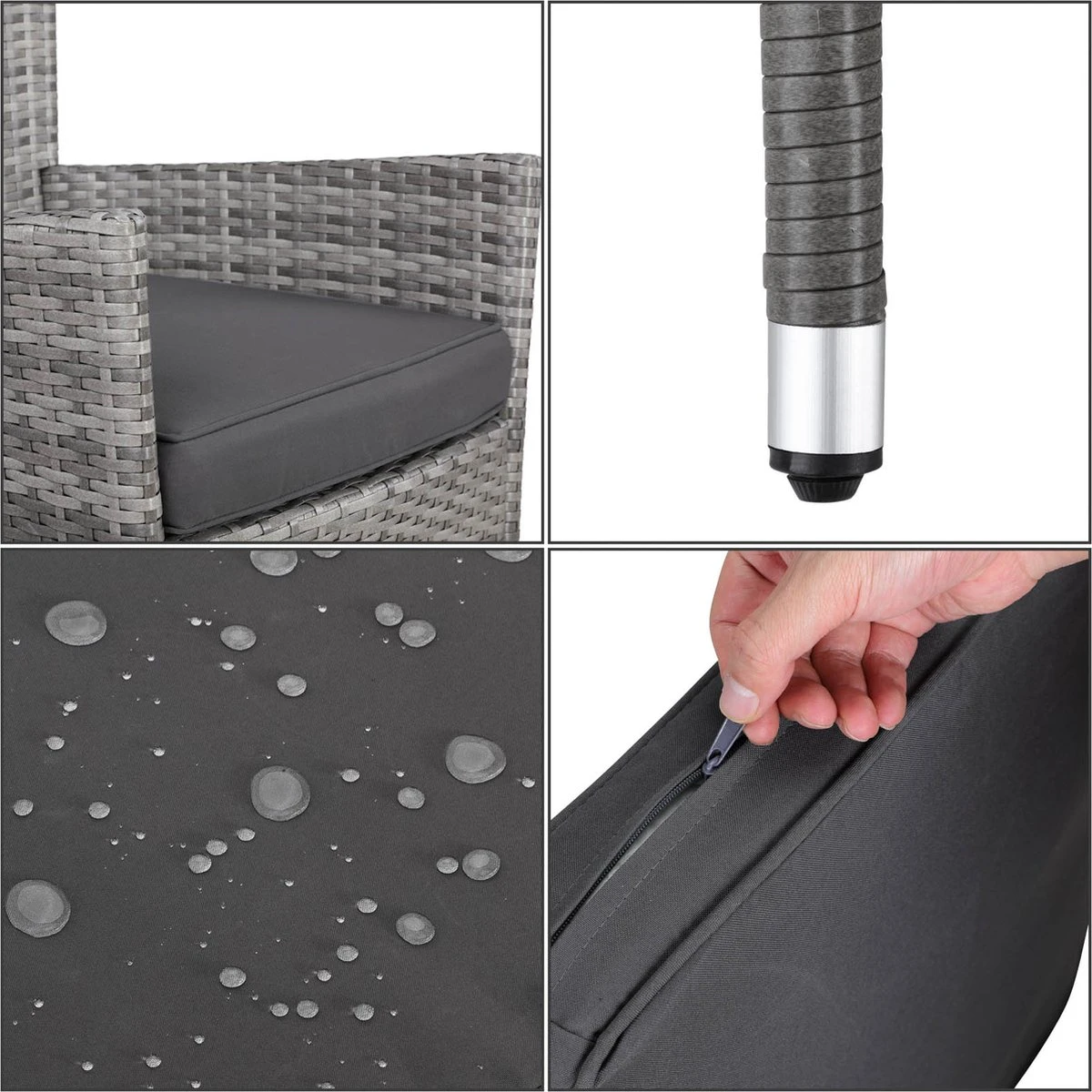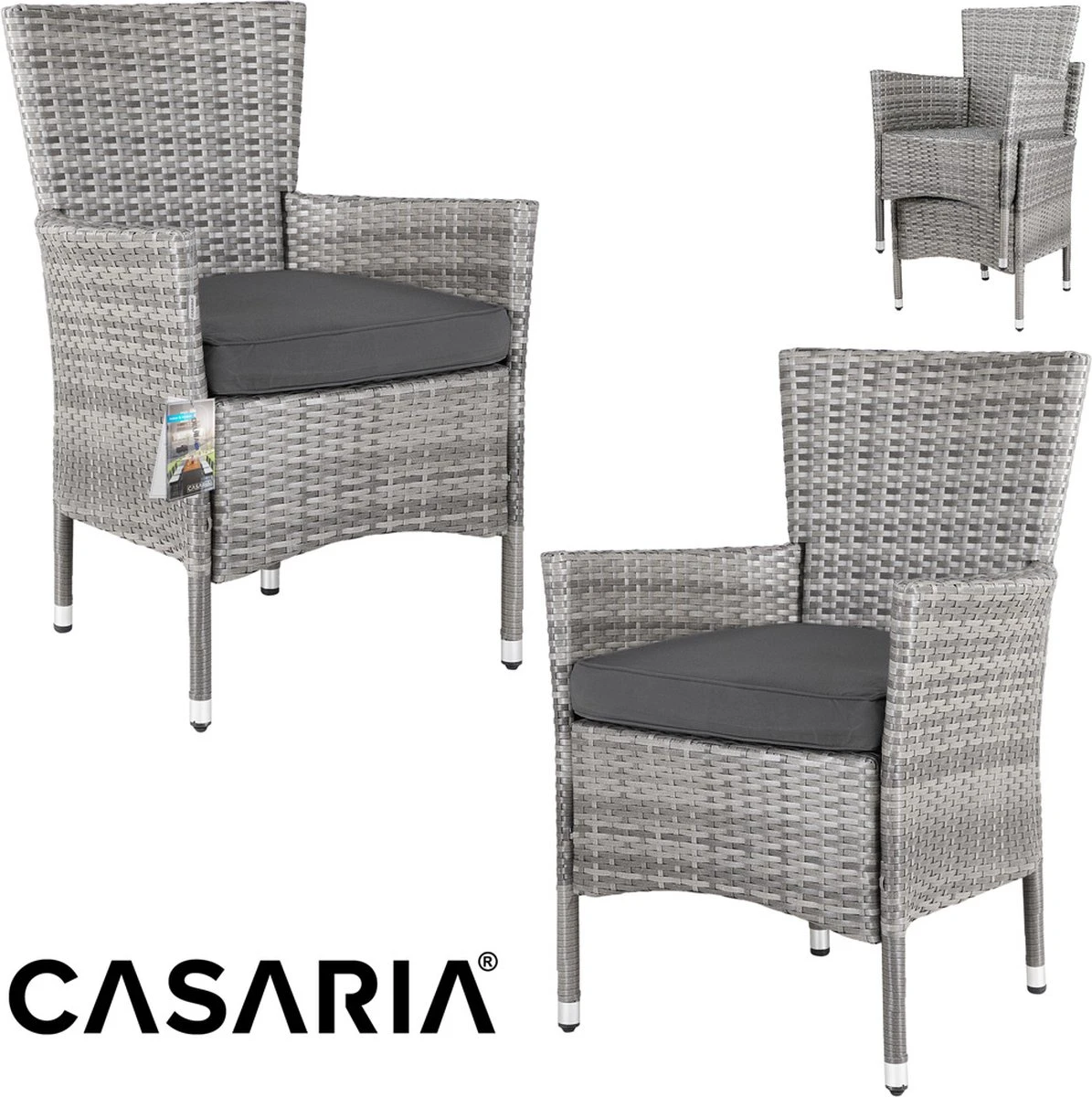Pratiques, les chaises de jardin en polyrotin CASARIA® sont faciles et rapides à monter. Le rembourrage des coussins, aveceffet nacré, sont hydrofuges et peut également être retiré si nécessaire etêtre lavé à 30°C †