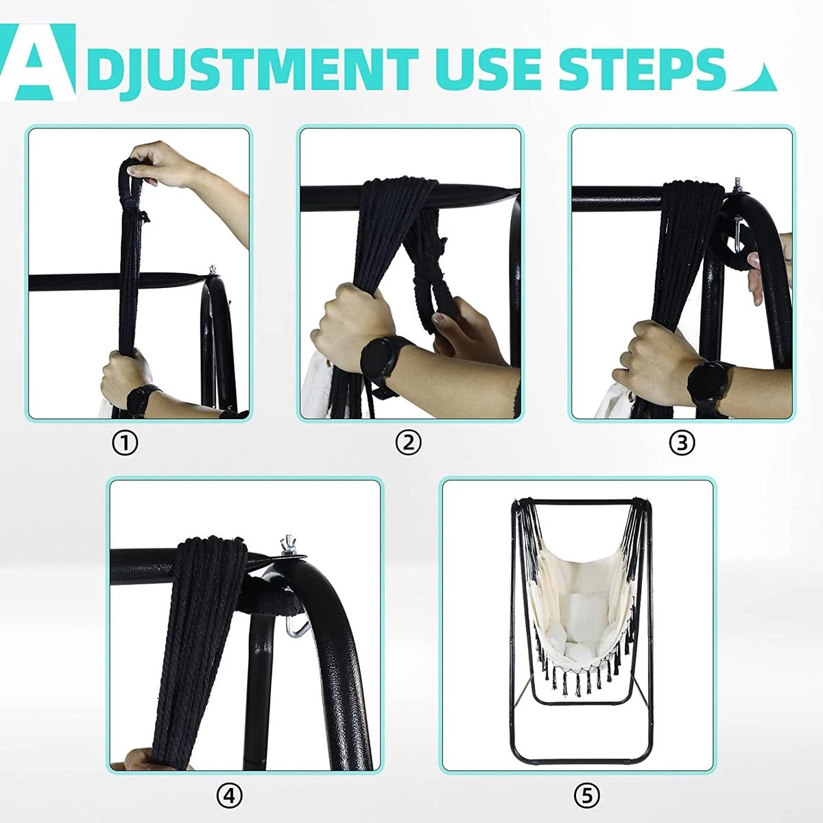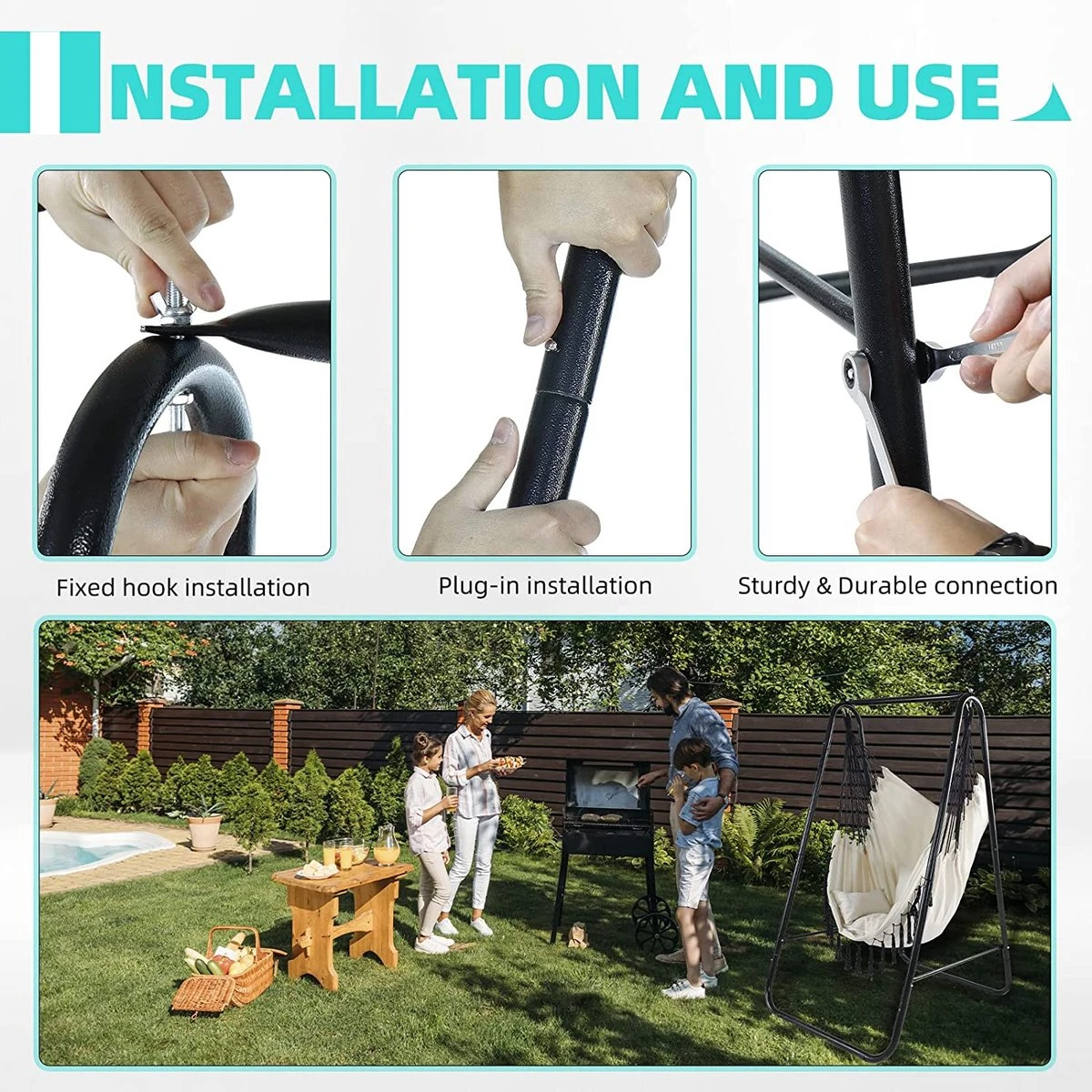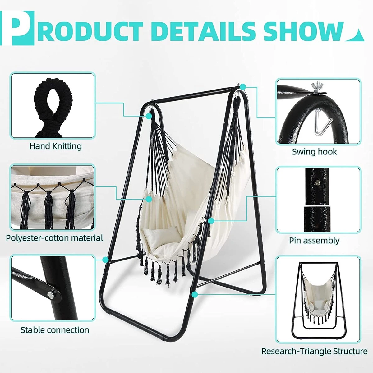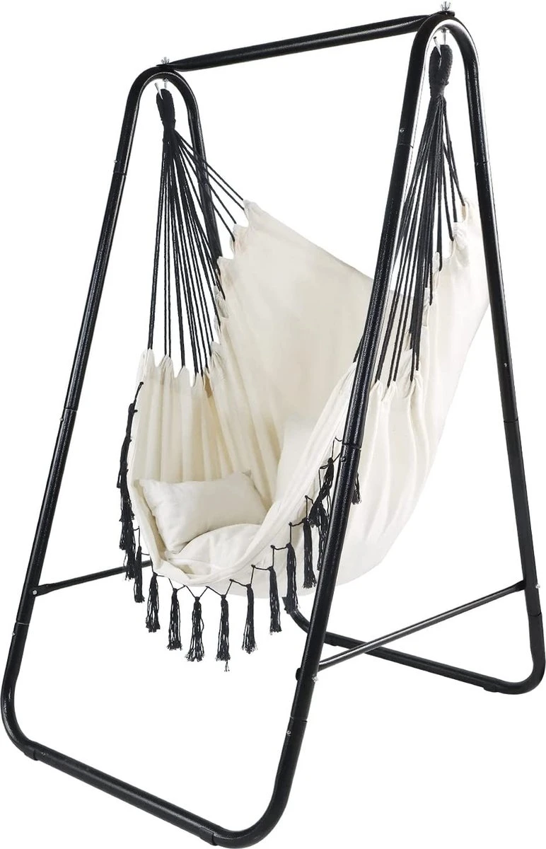 CCLIFE Chaise Hamac Suspendue Avec Cadre Et 3 Coussins Chaise Suspendue Suspendue Jusqu’à 100 Kg Chaise Suspendue De Jardin Intérieur Et Extérieur Beige 85x103x153cm