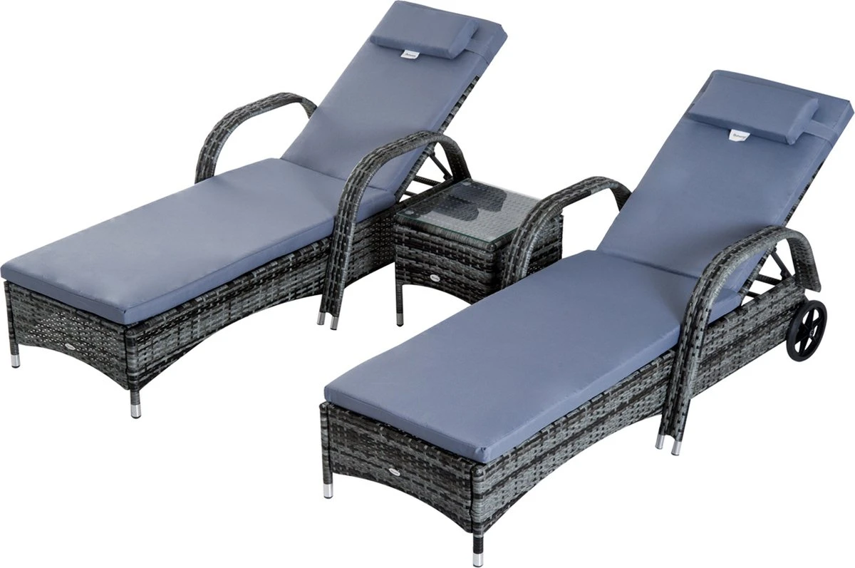 Ensemble de jardin 3 pièces, composé de 2 bains de soleil et 1 table d’appoint