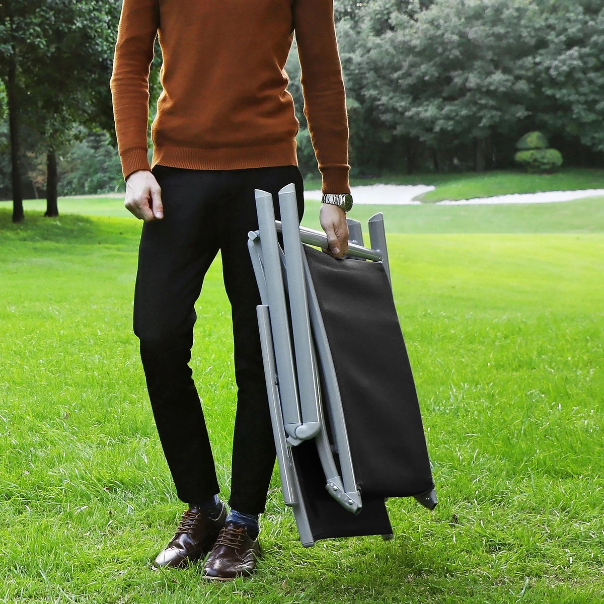 LA FLEXIBILITÉ EST TOUT : Cette chaise longue de jardin est pliable, donc lorsque vous ne l’utilisez pas, vous pouvez simplement la plier et la cacher dans n’importe quel coin ; De plus, la chaise pliée tient parfaitement dans la voiture et peut être facilement transportée à la plage ou au camping