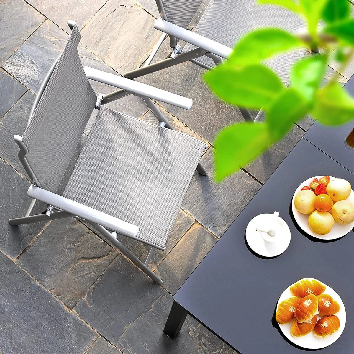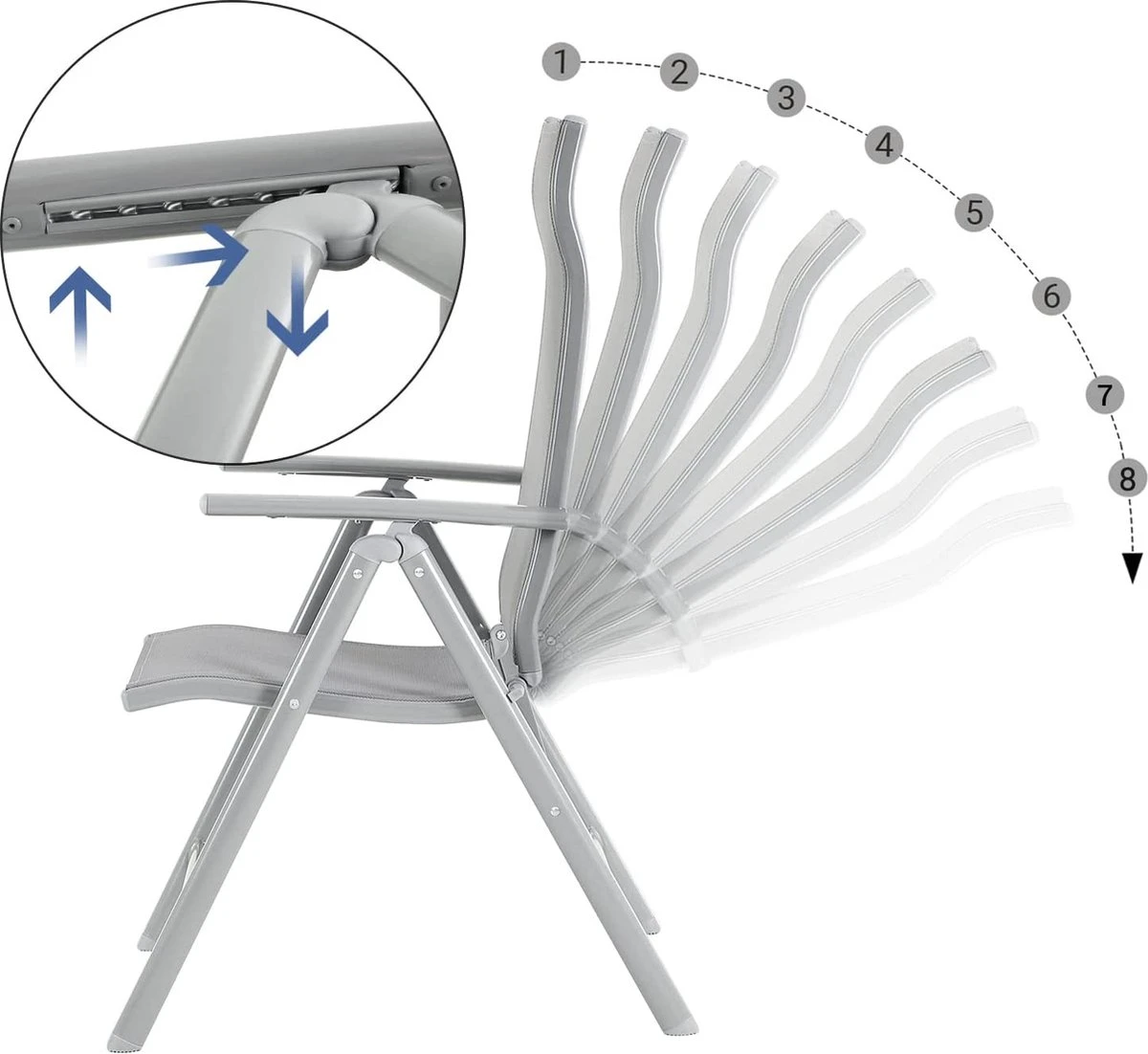 Chaise confortable pour jardin, balcon ou camping. Vous pouvez mettre la chaise dans une position différente avec un seul mouvement de la main.