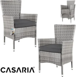Casaria Set De 2 Chaises De Jardin De Jardin Polyrotin Coussins 7cm Empilables Grijs