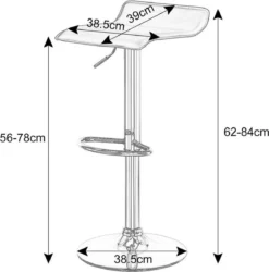 Tabouret De Bar Industriel – Tabourets De Bar En Cuir – Hauteur D’assise Réglable 56 – 78 Cm – Zwart 38,5 X 39 Cm