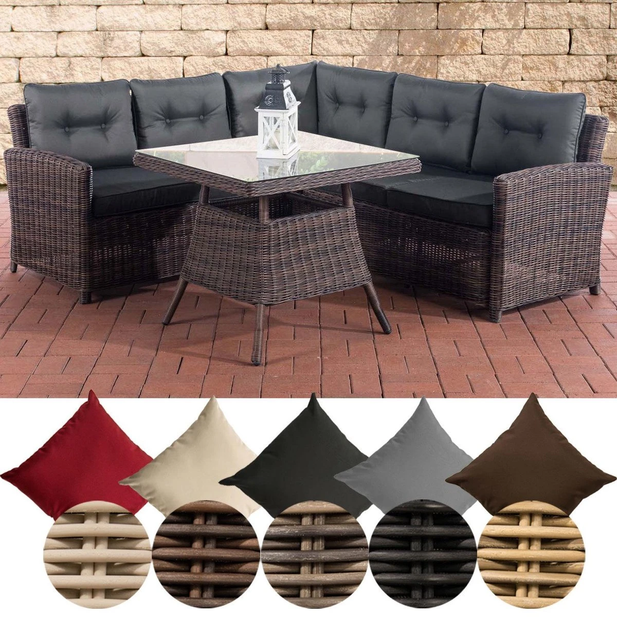 Les fibres de polyrattan rond de haute qualité de 5 mm d’épaisseur sont résistantes à l’eau, faciles à nettoyer et entièrement saturées de couleur, de sorte qu’elles conservent leur profondeur de couleur gris chiné même après une utilisation fréquente et prolongée. Cette nuance de couleur précieuse avec la structure légère donne l’aspect vraiment réaliste de cet ensemble de meubles de jardin.