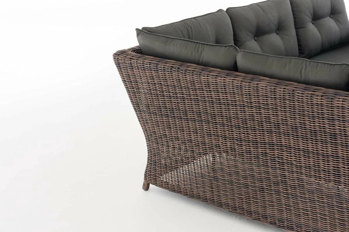 Ce groupe de sièges exclusif répond non seulement aux exigences optiques les plus élevées – le matériau traité à la main répond également aux meilleures normes de qualité et garantit la stabilité et une longue durée de vie. Le poly rotin résistant aux UV est particulièrement bien adapté pour une utilisation en extérieur. Le rotin poly ressemble au rotin tissé traditionnel, mais il est beaucoup plus robuste.