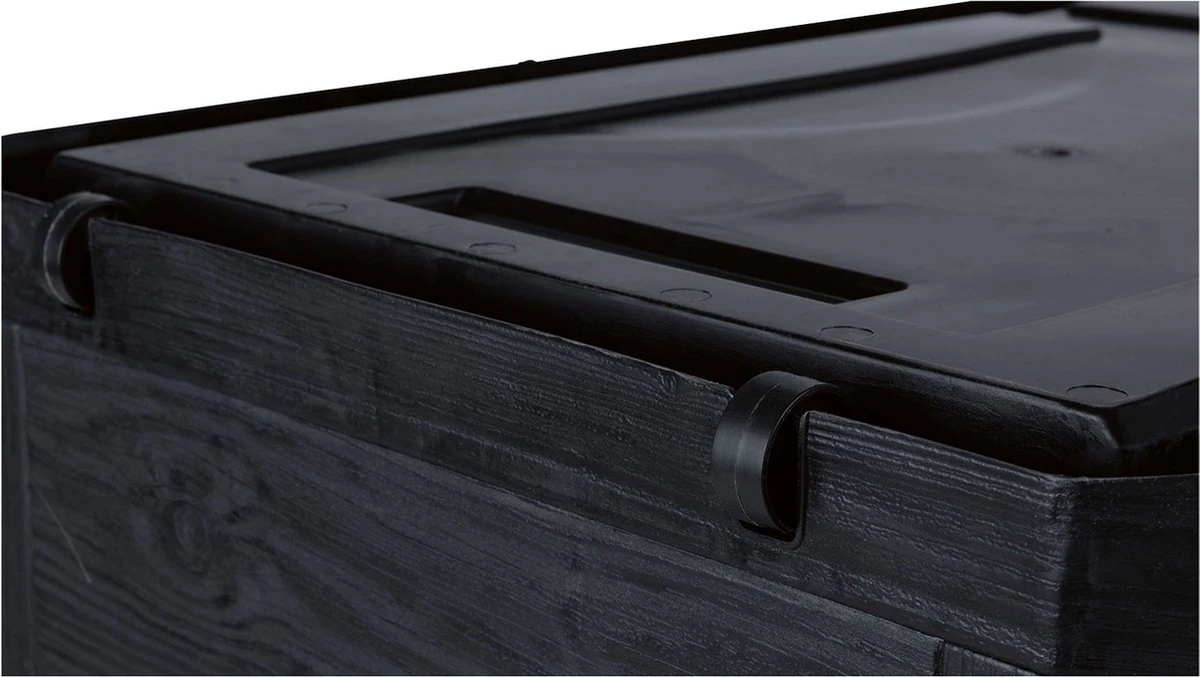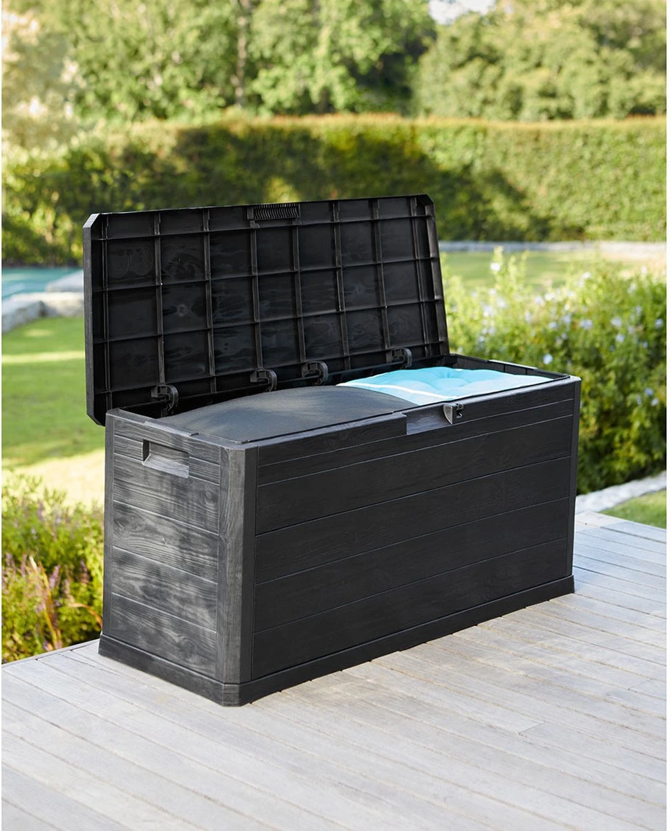 - La boîte est résistante aux intempéries et au gel et a un volume de 270 litres