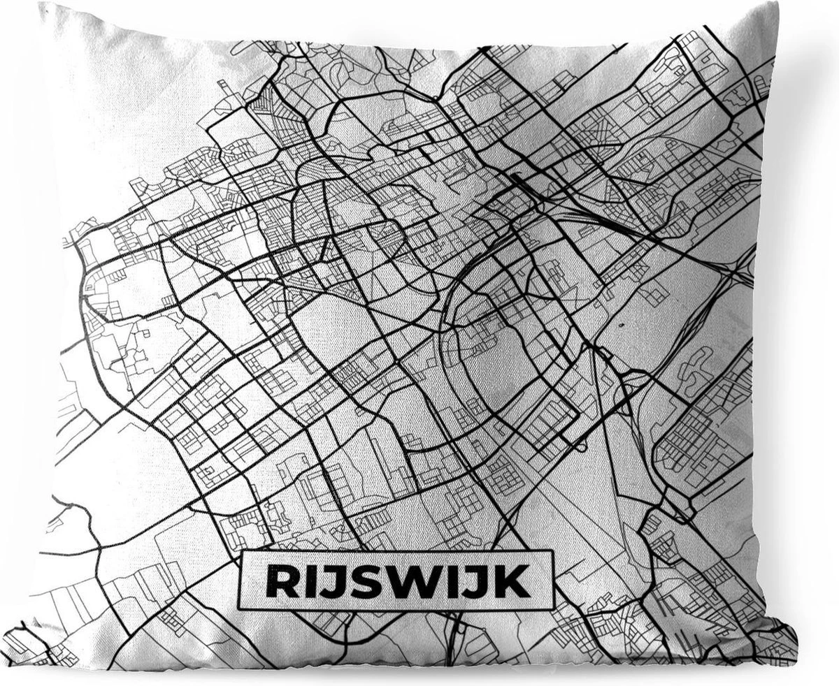 Des lignes fines et épaisses forment ensemble la version en noir et blanc de la carte de Rijswijk. Rijswijk est une ville des Nederland.