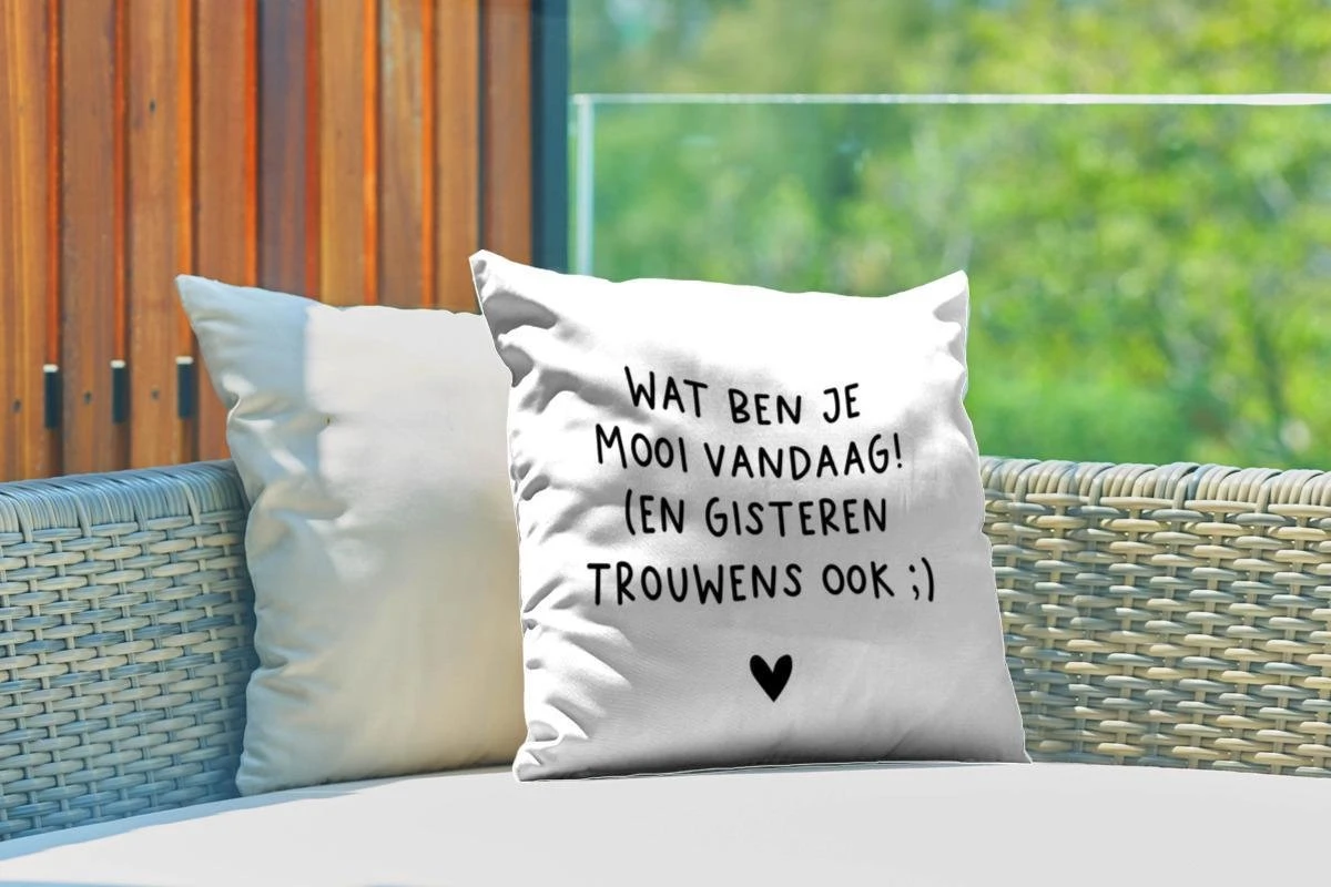 Citation néerlandaise »Tu es belle aujourd’hui ! (Et hier aussi 😉 » avec un coeur sur fond blanc.