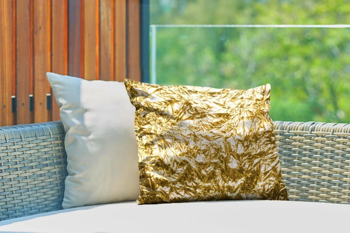 Coussins D’extérieur – Jardin – Feuille Dorée à La Texture Froissée – 50×30 Cm