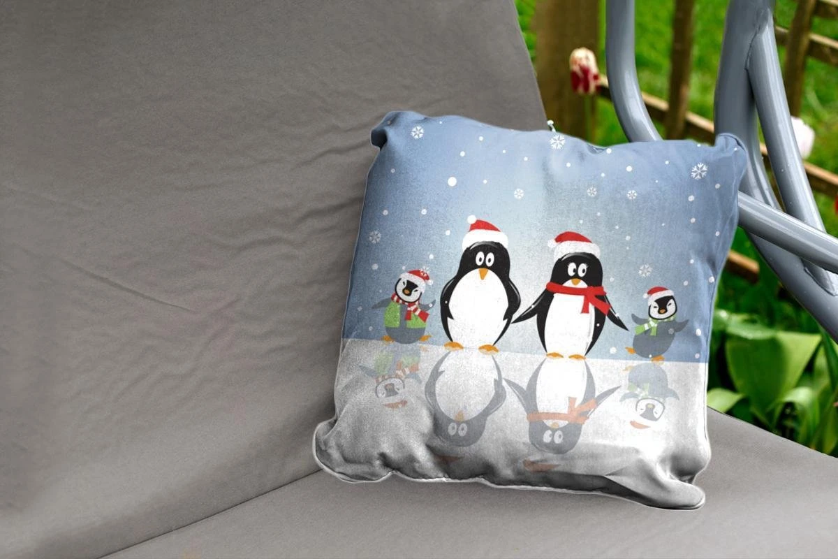 Coussins D’extérieur – Jardin – Illustration D’une Famille De Pingouins Sur La Glace – 45×45 Cm
