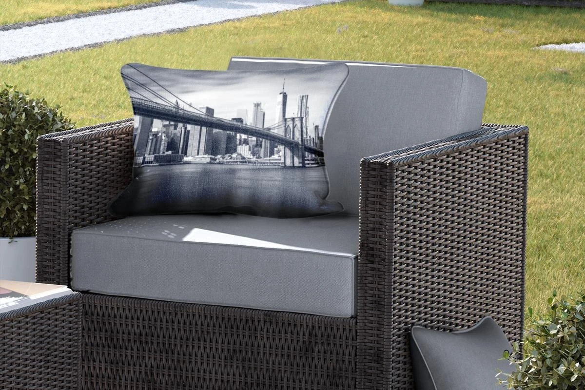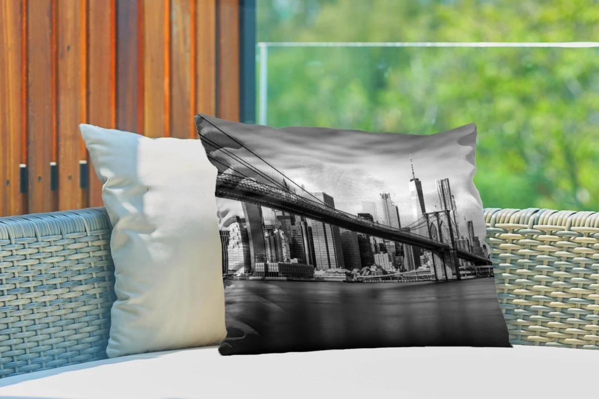 Coussins D’extérieur – Jardin – Pont De Brooklyn Et Skyline De New York En Noir Et Blanc – 60×40 Cm