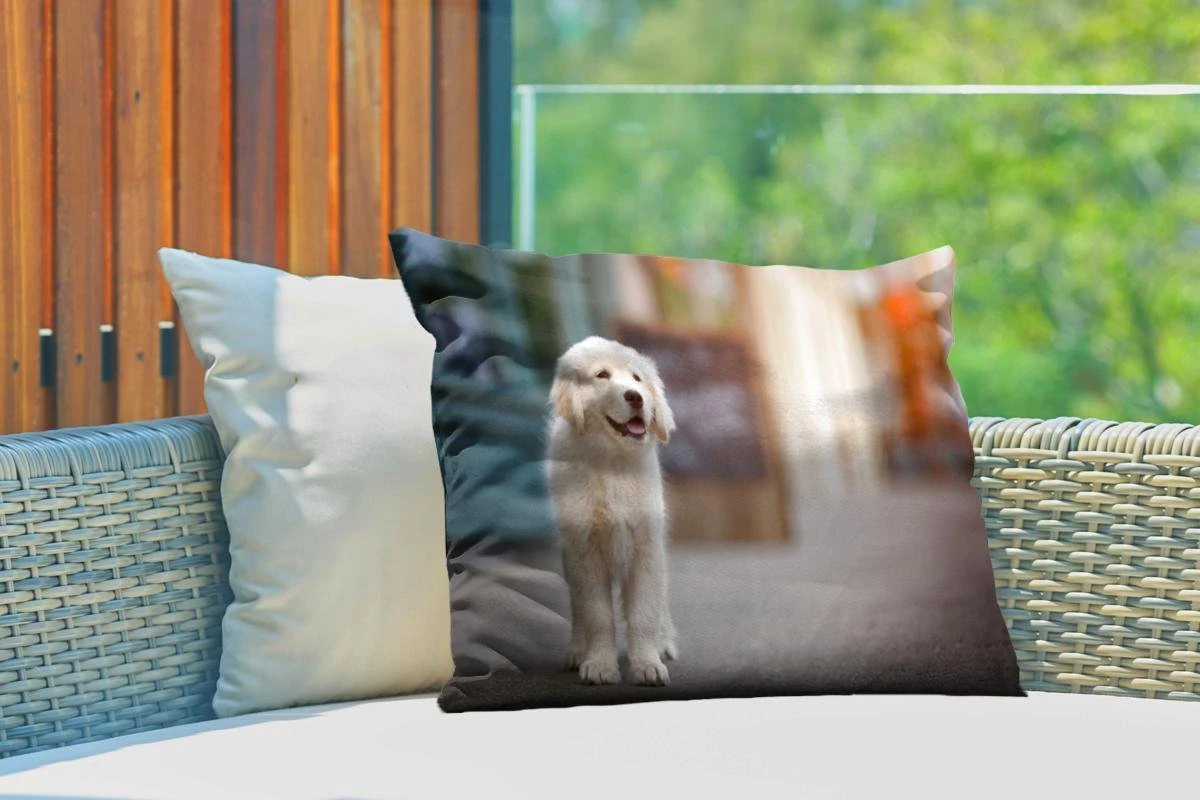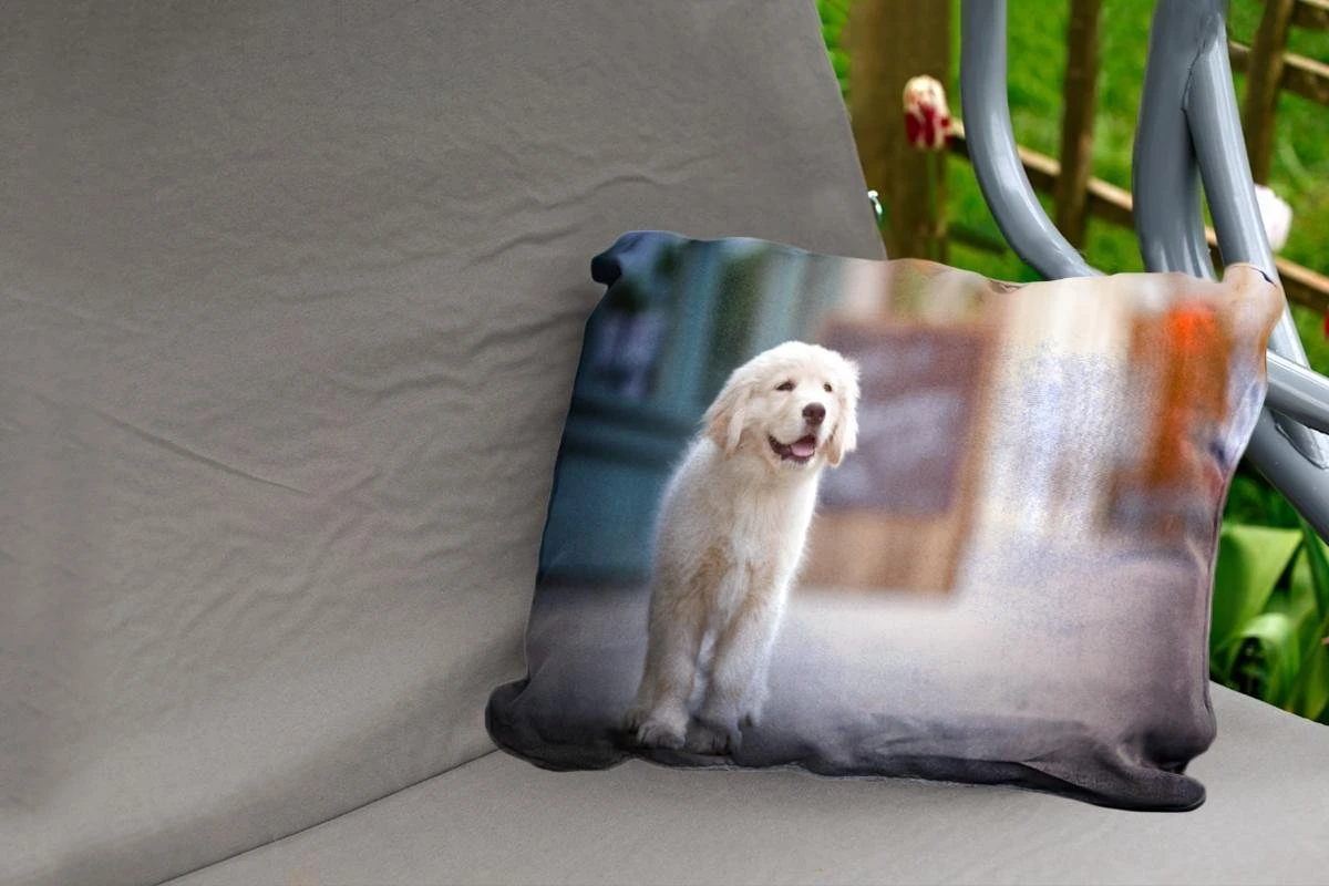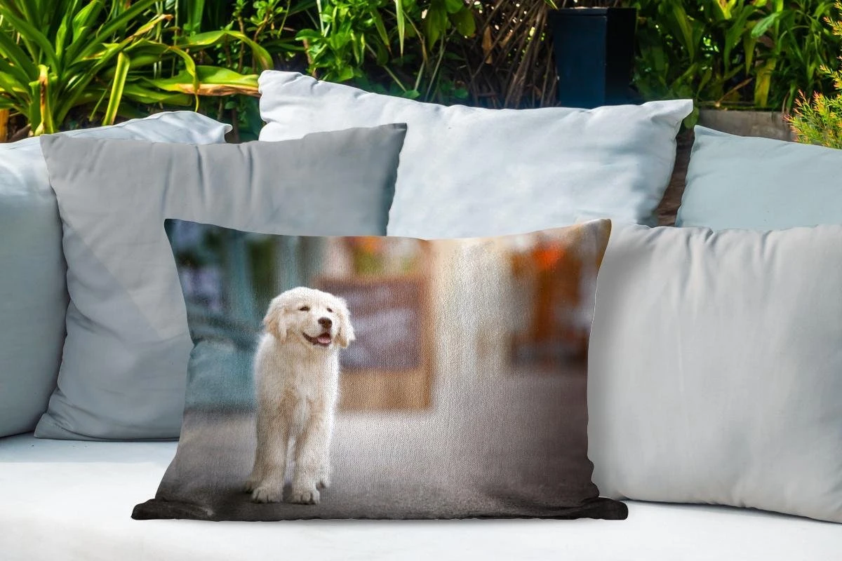 Coussins D’extérieur – Jardin – Un Chiot Golden Retriever Marchant Sur Le Trottoir – 60×40 Cm
