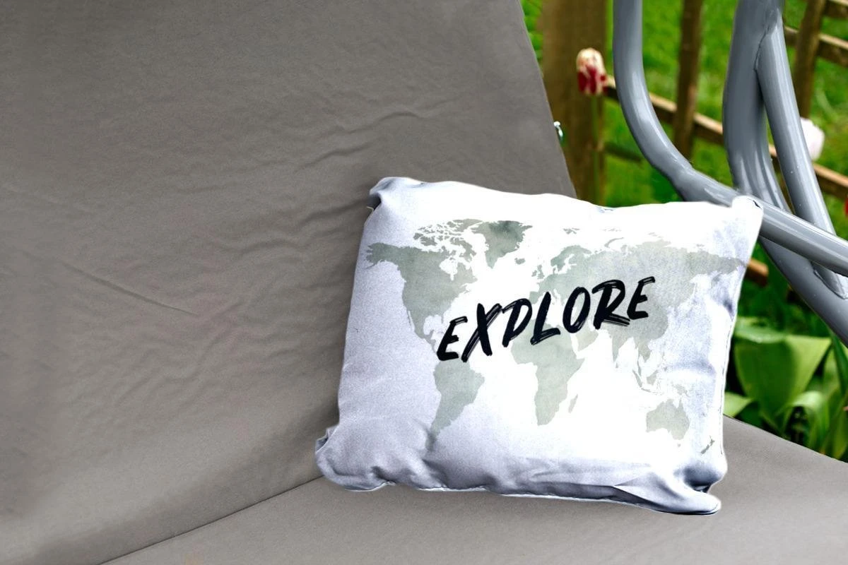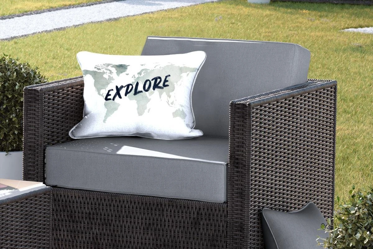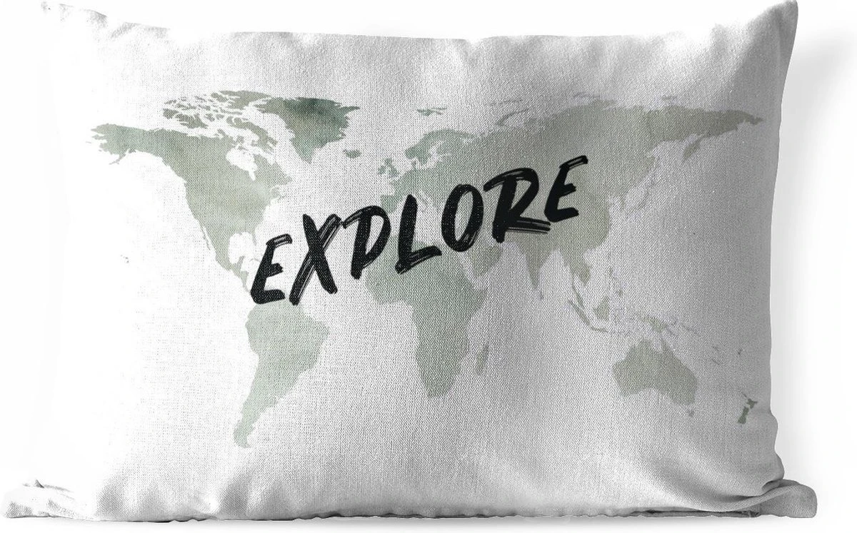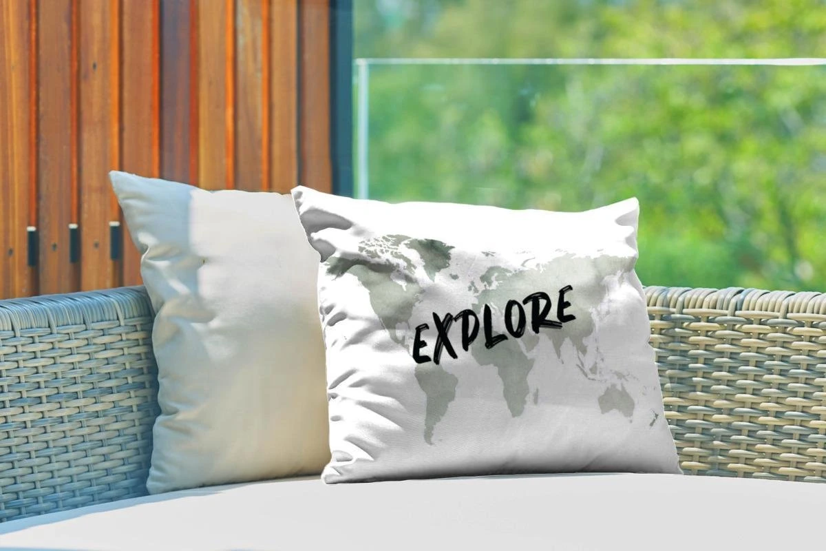 Coussins D’extérieur – Jardin – Wereldkaart Des Eaux Grises Avec Le Mot Explore It – 50×30 Cm