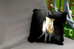 Coussin D’extérieur Résistant Aux Intempéries – Roses – Fleurs – Or – Zwart – 50×50 Cm