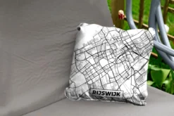 Coussin D’extérieur – Carte – Rijswijk – Zwart – Wit – 45×45 Cm – Résistant Aux Intempéries