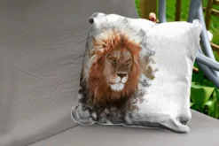 Sierkussen Extérieur – Lion – Ligne – Couleurs – 60×60 Cm – Résistant Aux Intempéries