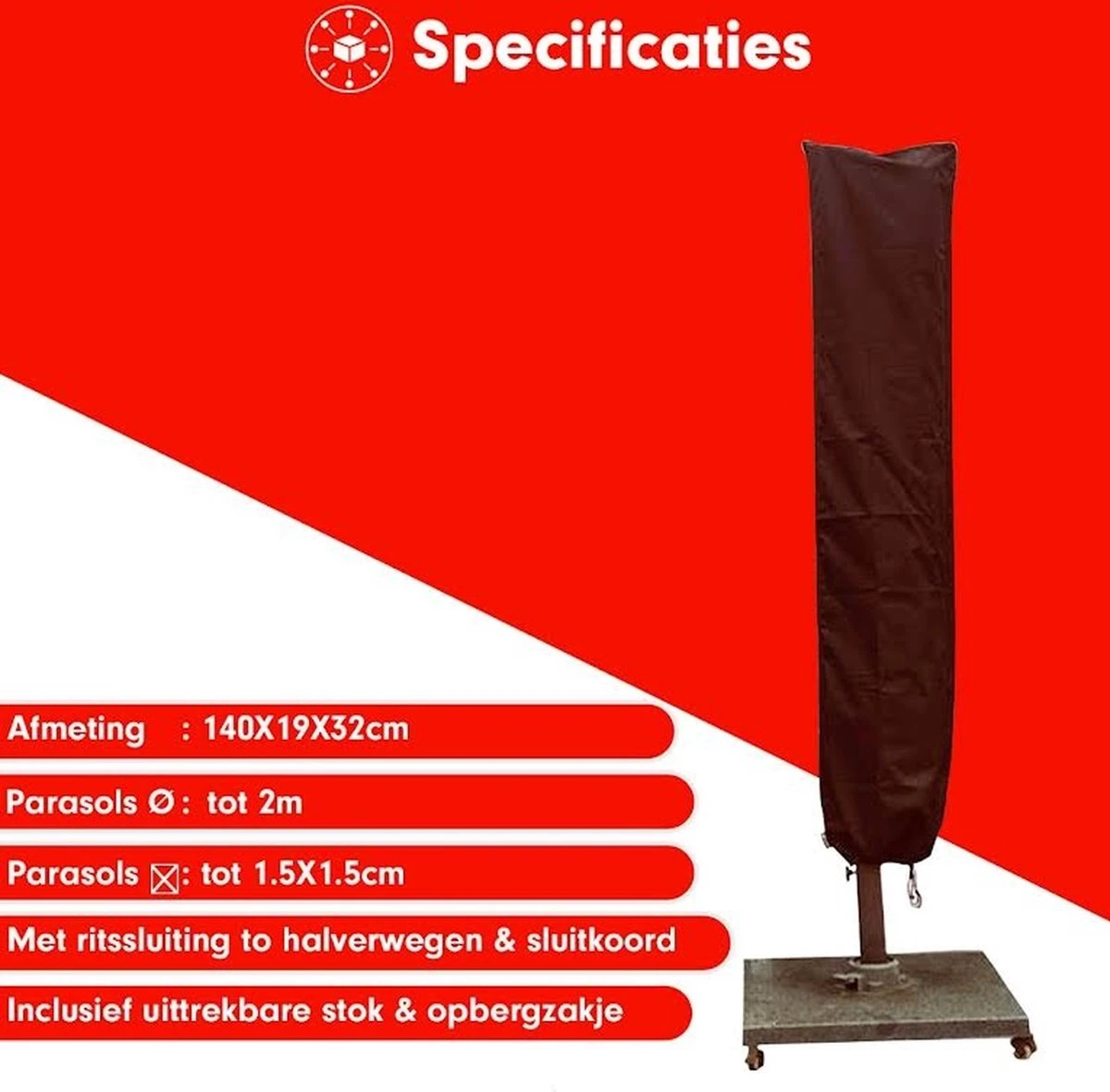 - Pour parasols carrés jusqu’à 1,5×1,5 mètres