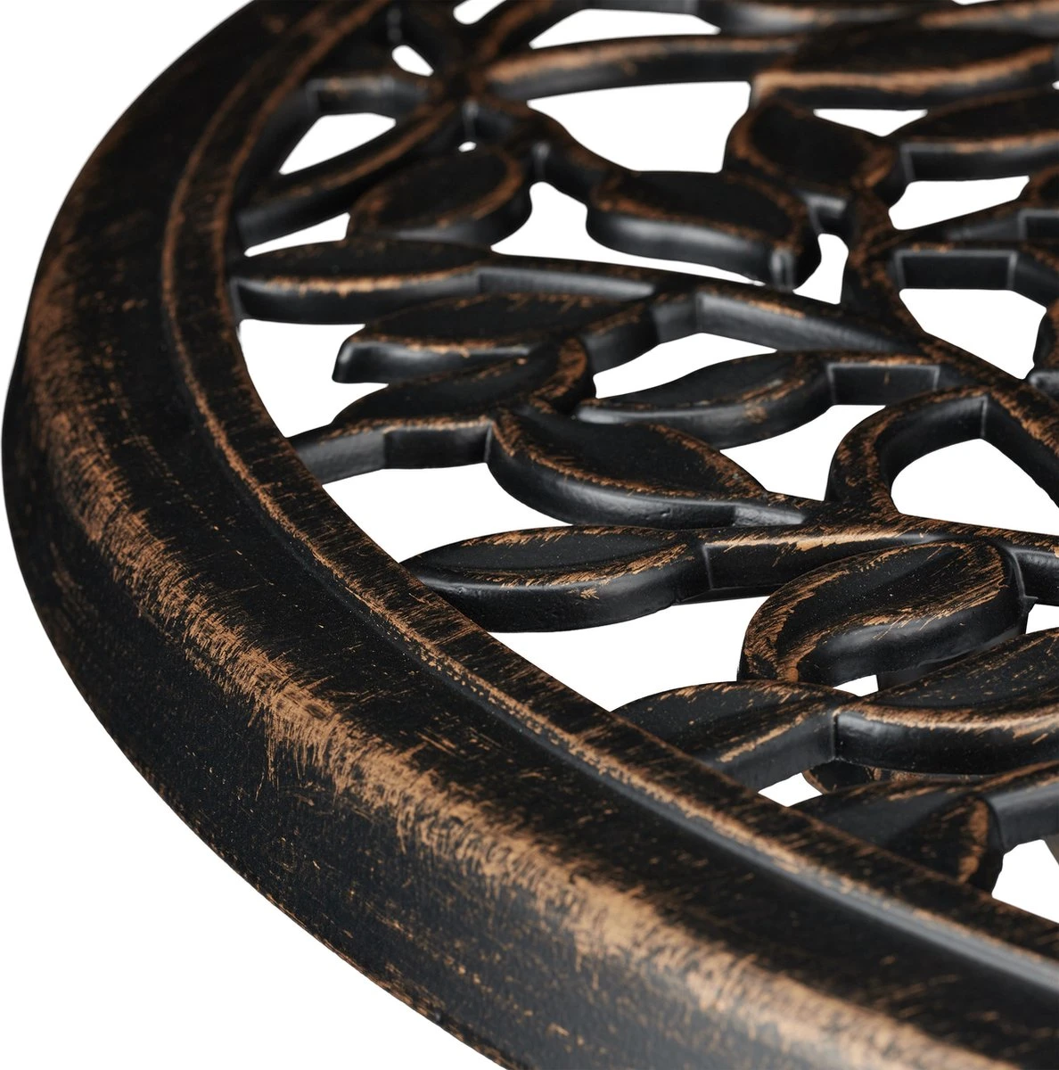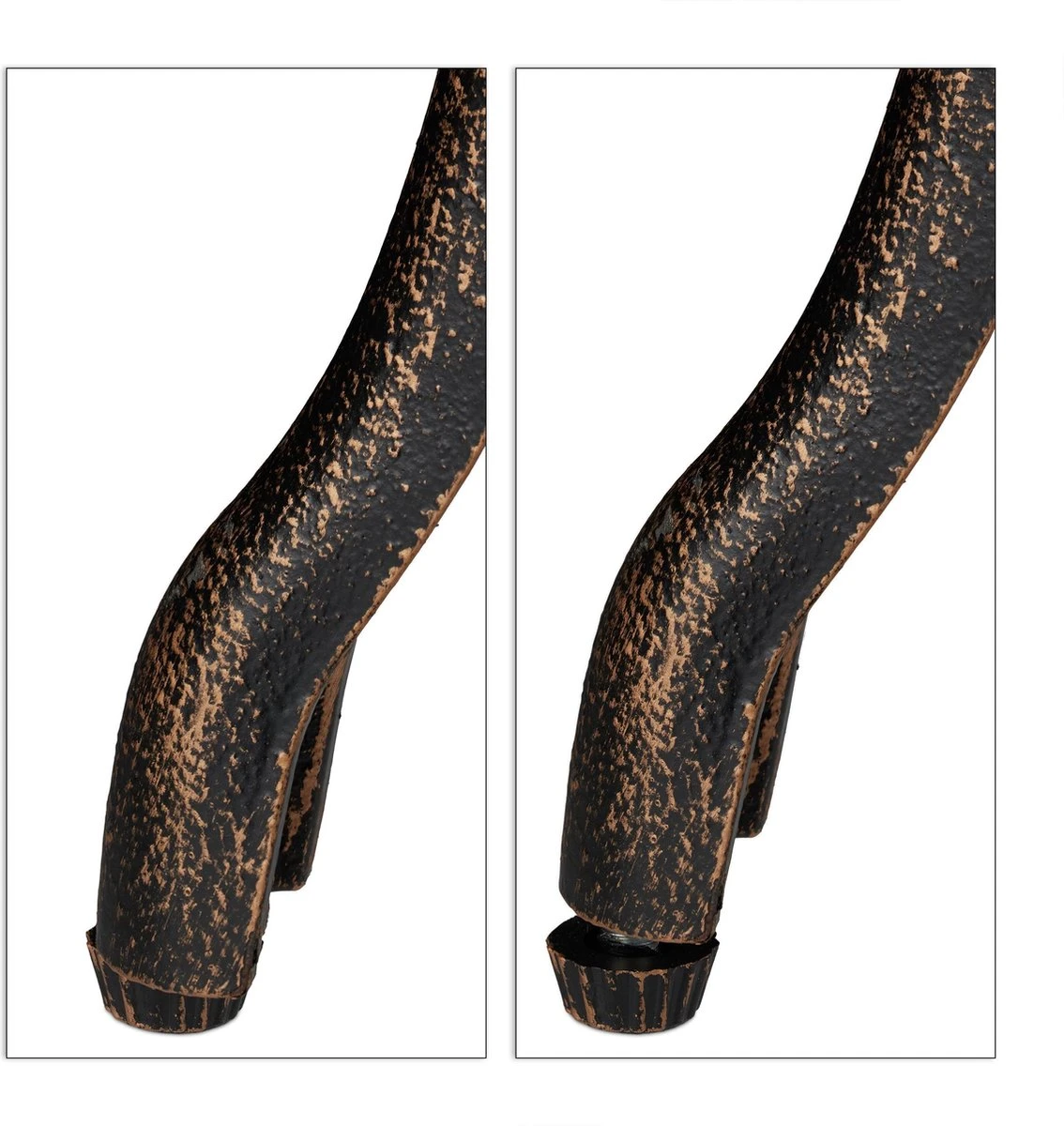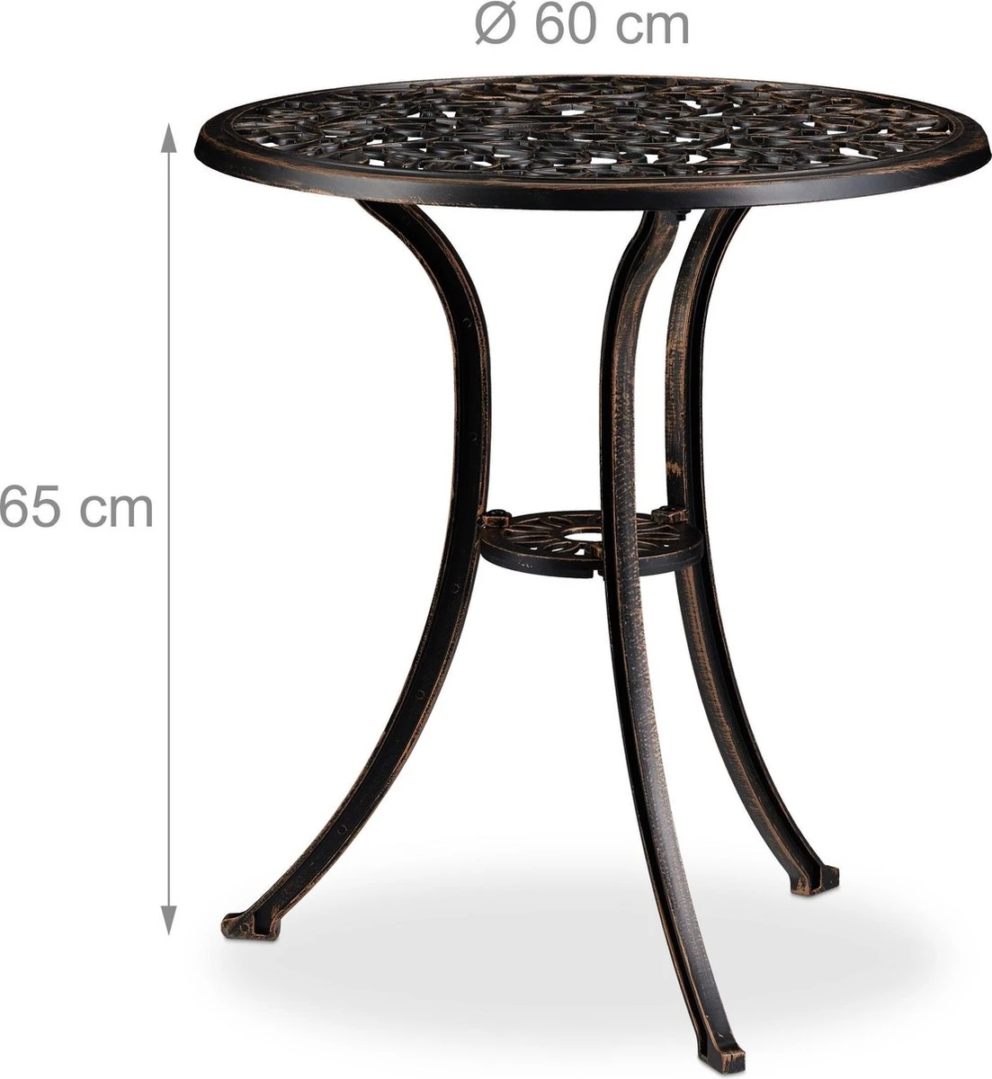 Rêvez de la Provence française avec le balcon de bistrot ludique au design romantique. La table de jardin ronde et les 2 chaises se distinguent par leur motif floral dans le bronze. Les meubles de patio en aluminium enduit sont légers et toujours très robustes. Les avantages de cet ensemble de balcon sont la capacité de charge ainsi que la résistance aux intempéries. En raison de la taille, des chaises de balcon et une table conviennent à la fois aux petits balcons et aux grands jardins. Ensemble de jardin en détail – Dimensions de la table H x P: environ 65 x 60 cm / environ 3,8 kg – Dimensions de la chaise H x L x P chacune: environ 86 x 40 x 40 cm / environ 3,5 kg – Capacité de charge de la table: env. 80 kg – Capacité de charge de chaque chaise: env.100 kg – Matériau: aluminium – Couleur: Bronze Chaise de jardin en détail – Hauteur d’assise: env.41 cm – Surface d’assise D: env.36 cm – Dossier H x L x P: env.47 x 40 cm – Pieds réglables en hauteur jusqu’à max.1,5 cm Table de bistrot avec 2 chaises – Ensemble de mobilier de jardin en métal clair en bronze pour 2 personnes – Bel ensemble de balcon pour une ambiance agréable – Table de balcon ronde avec motif fleuri et 3 pieds – Chaise de bistrot avec ornements sur le dossier et l’assise – Romantique ensemble de jardin pour l’extérieur et l’intérieur Contenu de la livraison – 1x table de balcon (en parties) – 2 x chaise de balcon (en parties) – Incl. Instructions de montage et matériel de montage – La décoration n’est pas incluse dans la livraison