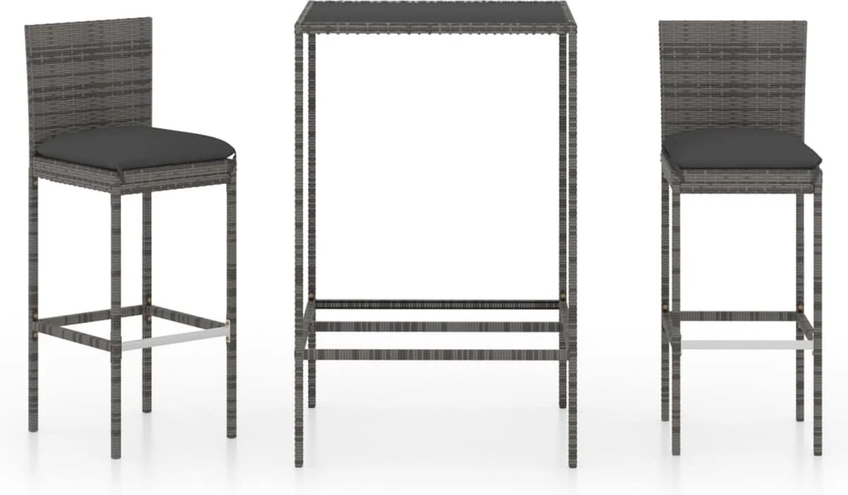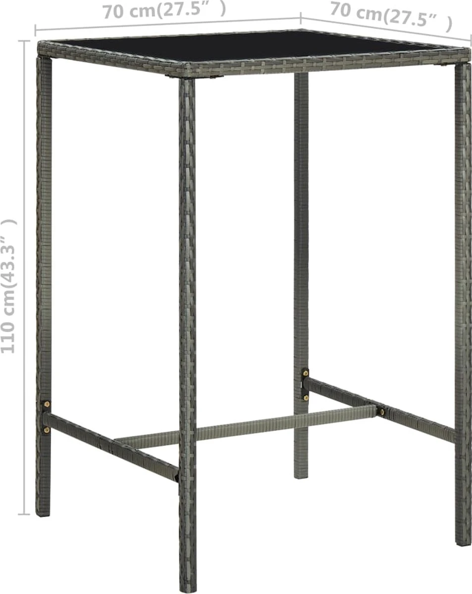 Cette table de bar a un cadre en acier enduit de poudre recouvert de rotin PE résistant aux intempéries, ce qui la rend parfaite pour une utilisation en extérieur. Le plateau en verre trempé est facile à nettoyer. Les tabourets de bar ont une structure en acier solide et sont fabriqués en rotin PE résistant aux intempéries, ce qui les rend stables et faciles à déplacer. Le coussin d’assise et le repose-pieds intégré rendent le tabouret très confortable.