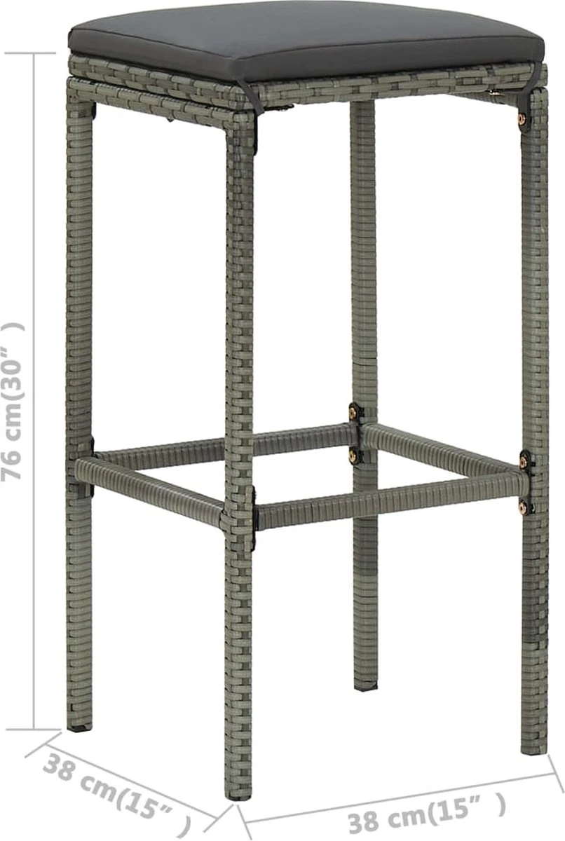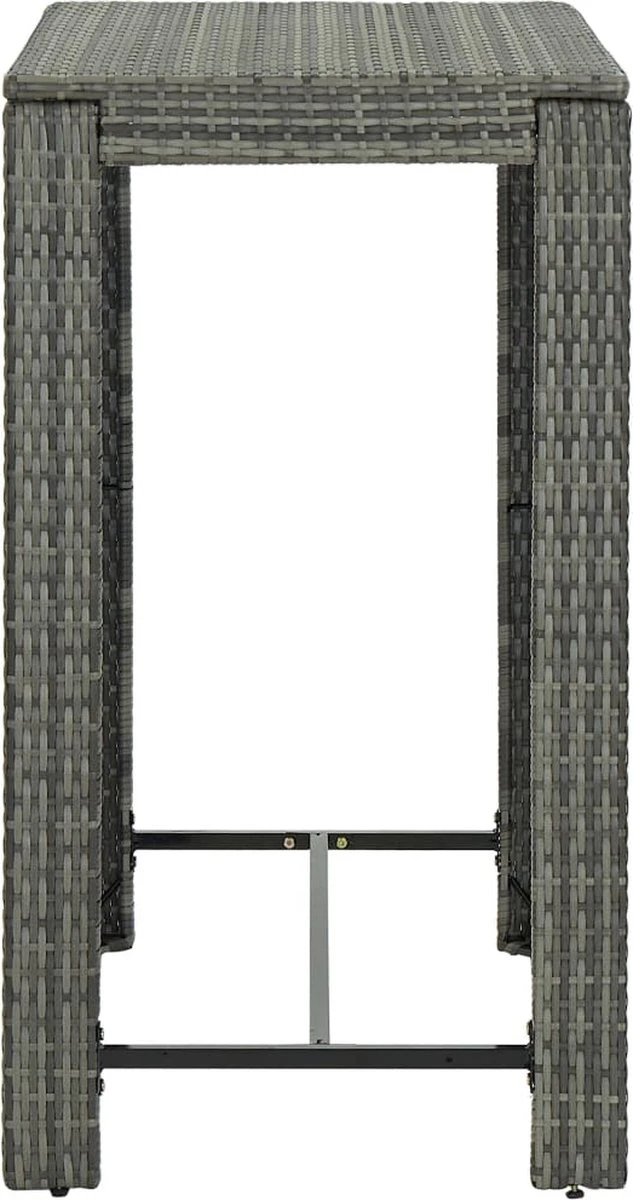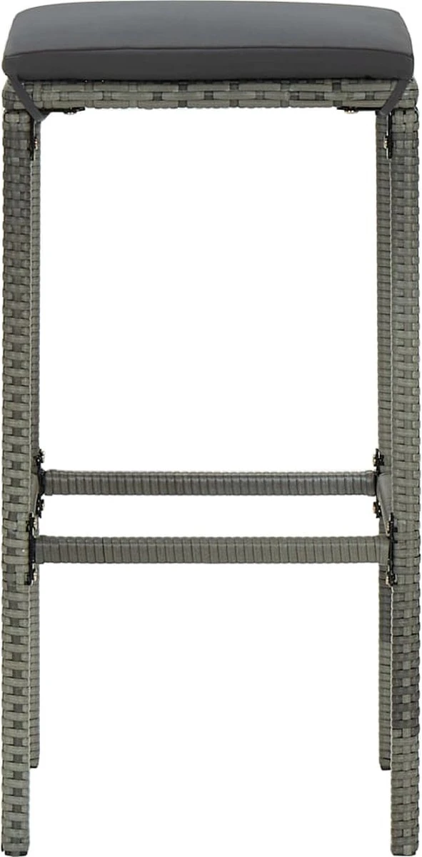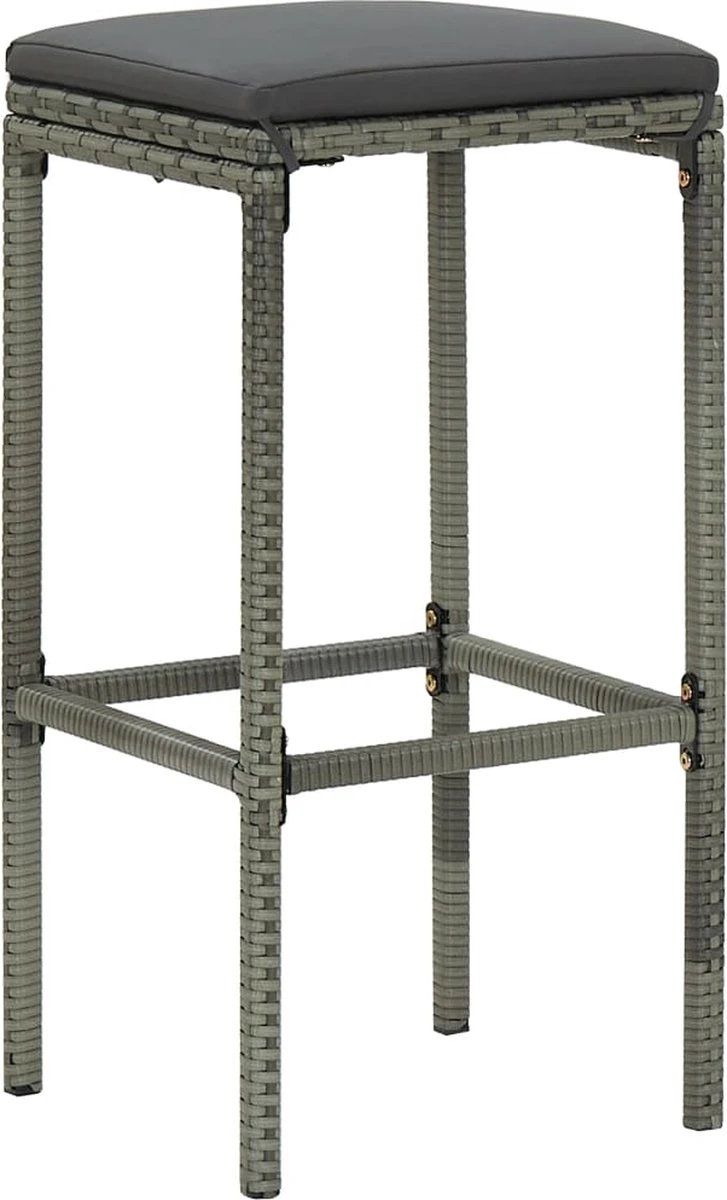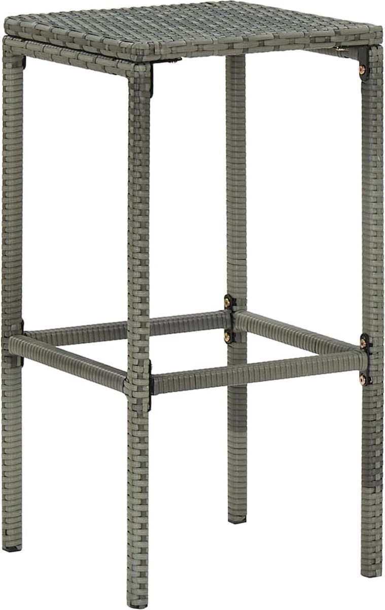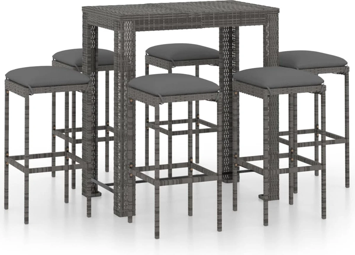 La table de bar est soutenue par un cadre en acier enduit de poudre, ce qui la rend stable et robuste. Le plateau de table carré est idéal pour placer des boissons, des collations et des objets de décoration. Les tabourets ont une structure en acier et sont fabriqués en rotin PE résistant aux intempéries, ce qui les rend stables et faciles à déplacer. Le kussen et le repose-pieds rendent le tabouret encore plus confortable. La housse de coussin en polyester avec fermeture éclair dissimulée est facile à nettoyer.