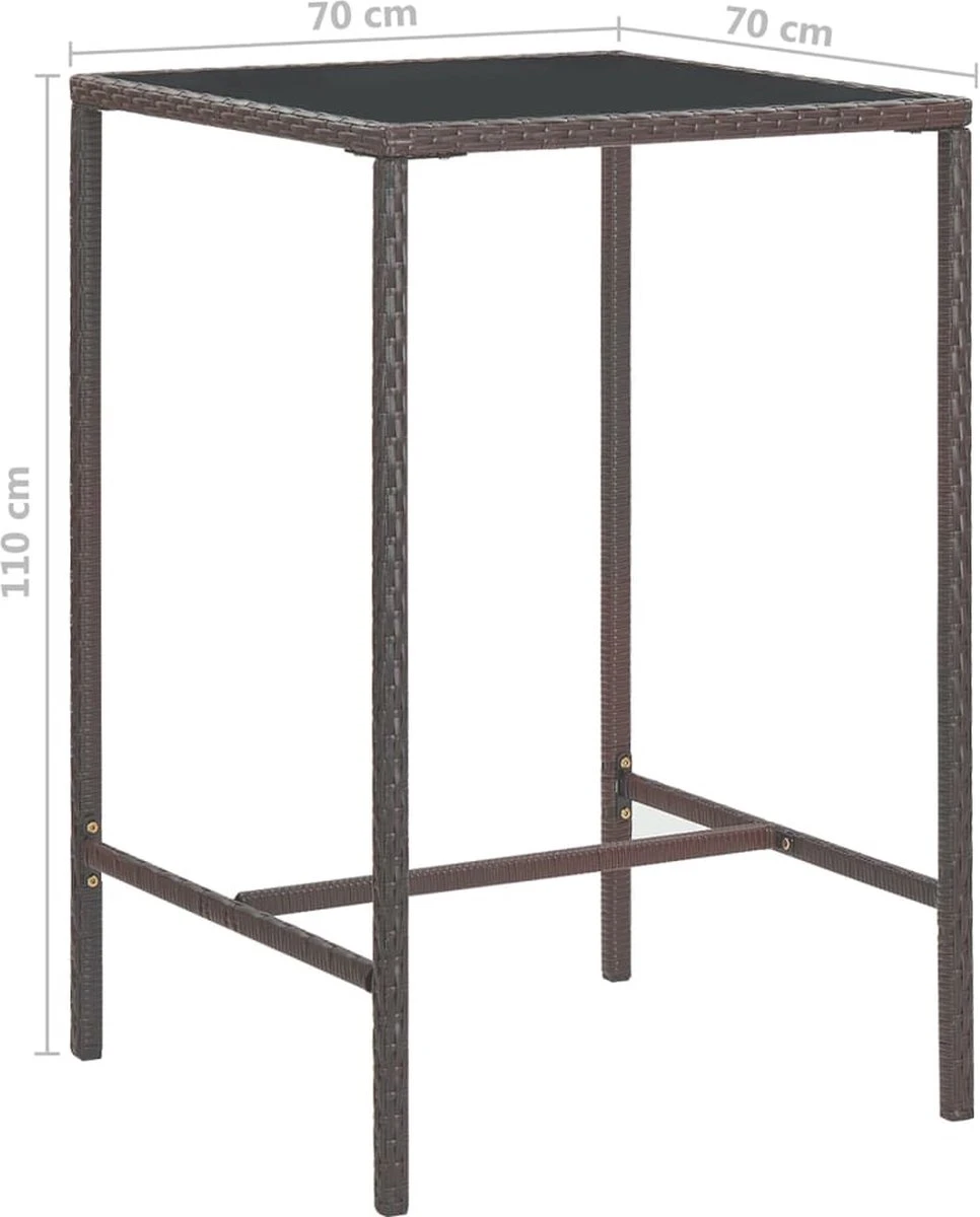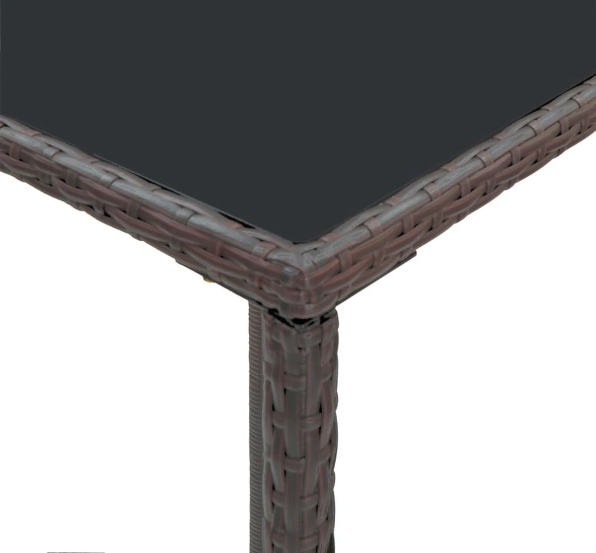 Cet ensemble de bar de jardin est en rotin PE résistant aux intempéries et à l’eau et est donc facile à nettoyer, résistant et adapté à un usage quotidien. Le cadre en acier enduit de poudre rend la table et les tabourets robustes et durables. Le dessus de table en verre trempé est idéal pour placer des boissons, de la nourriture ou des objets décoratifs. Le repose-pieds et les coussins confèrent au tabouret un confort d’assise supplémentaire. Grâce à la construction légère, toutes les pièces sont faciles à déplacer.