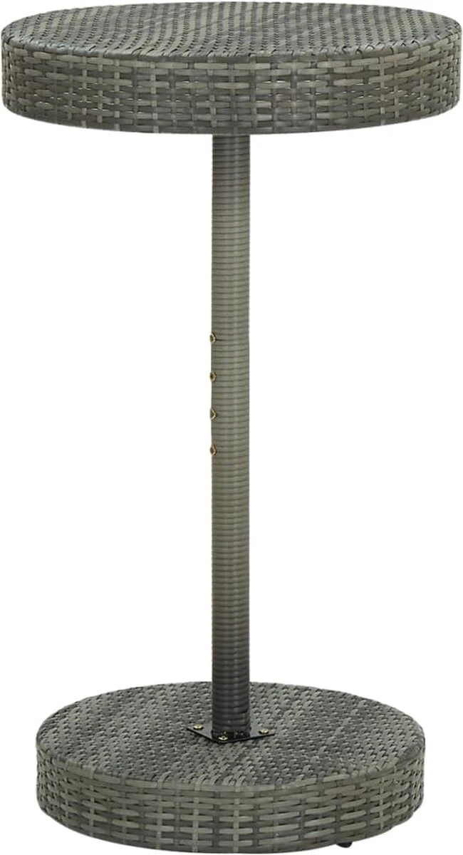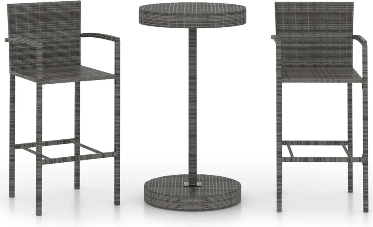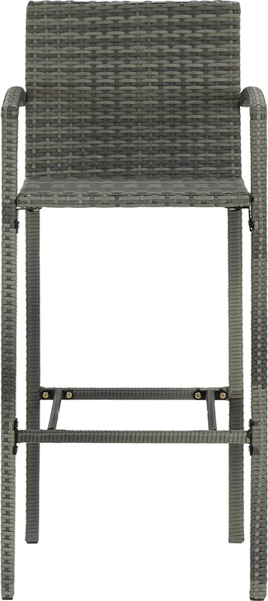 La table de bar est soutenue par un cadre en acier enduit de poudre, ce qui la rend stable et robuste. Le plateau de table rond est idéal pour placer des boissons, des collations et des objets de décoration. Les tabourets ont une structure en acier et sont fabriqués en rotin PE résistant aux intempéries, ce qui les rend stables et faciles à déplacer. Le repose-pieds rend le tabouret encore plus confortable.